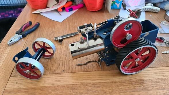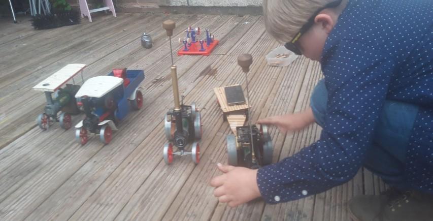 Had we made it a two day event, it wouldn't have worked half as well. In our garden, the whole family worked hard - we mowed the grass, painted the fence, moved an elder bush and generally tidied up so our rally ground was ready. Apprentice Charlotte learned a lot restoring the old Mamod traction engine she had been given, though no postal delivery on the Saturday meant it