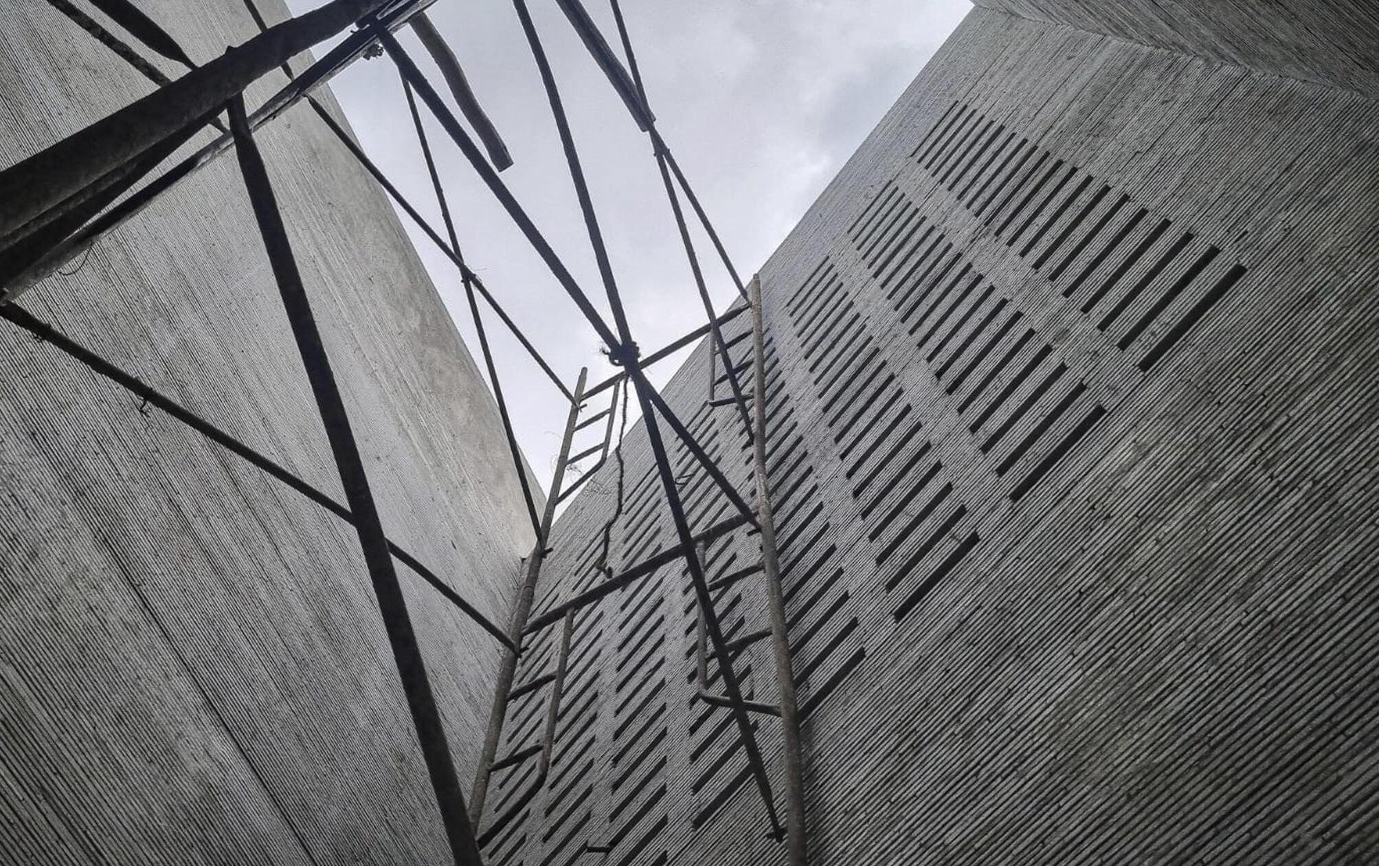 To balance the client’s request for abundant natural light with the need to mitigate Hyderabad’s intense heat, a series of post-tensioned concrete skylights were strategically integrated, providing both illumination and thermal protection.