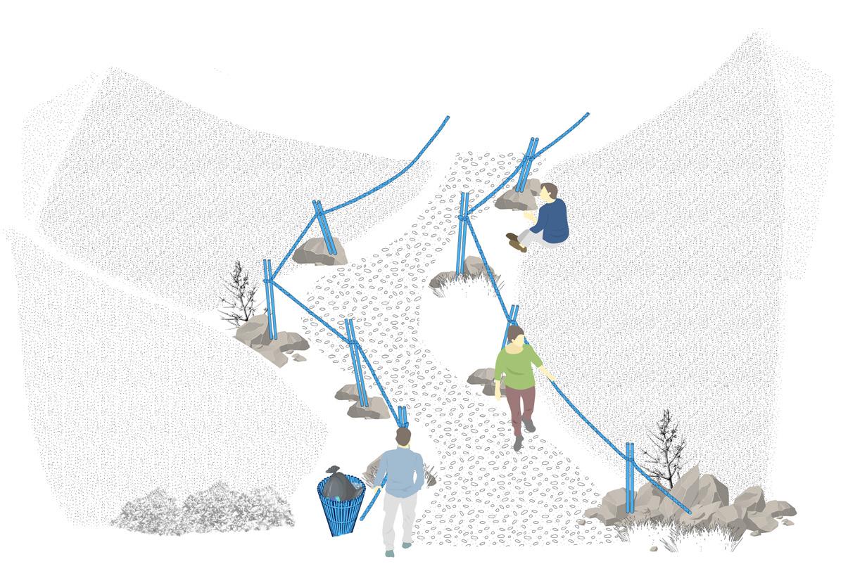To prevent the further de-stabilization of the dunes, the Coastal Braces project envisions a plan consisting of designated trails, no-go zones, a coastal road park , repurposing of buildings in high risk zones and a series of elements that make the dune a public space and economic booster for the citizens of Concon while promoting sustainable tourist destination for the world.