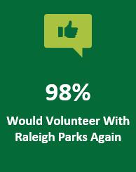 VolunteersaremorethanaresourcetoRaleighParks.Theyarepartoftheteamanddirectlyconnectedtothe accomplishmentofourmissionandtheexperiencesofthecommunityatlarge.