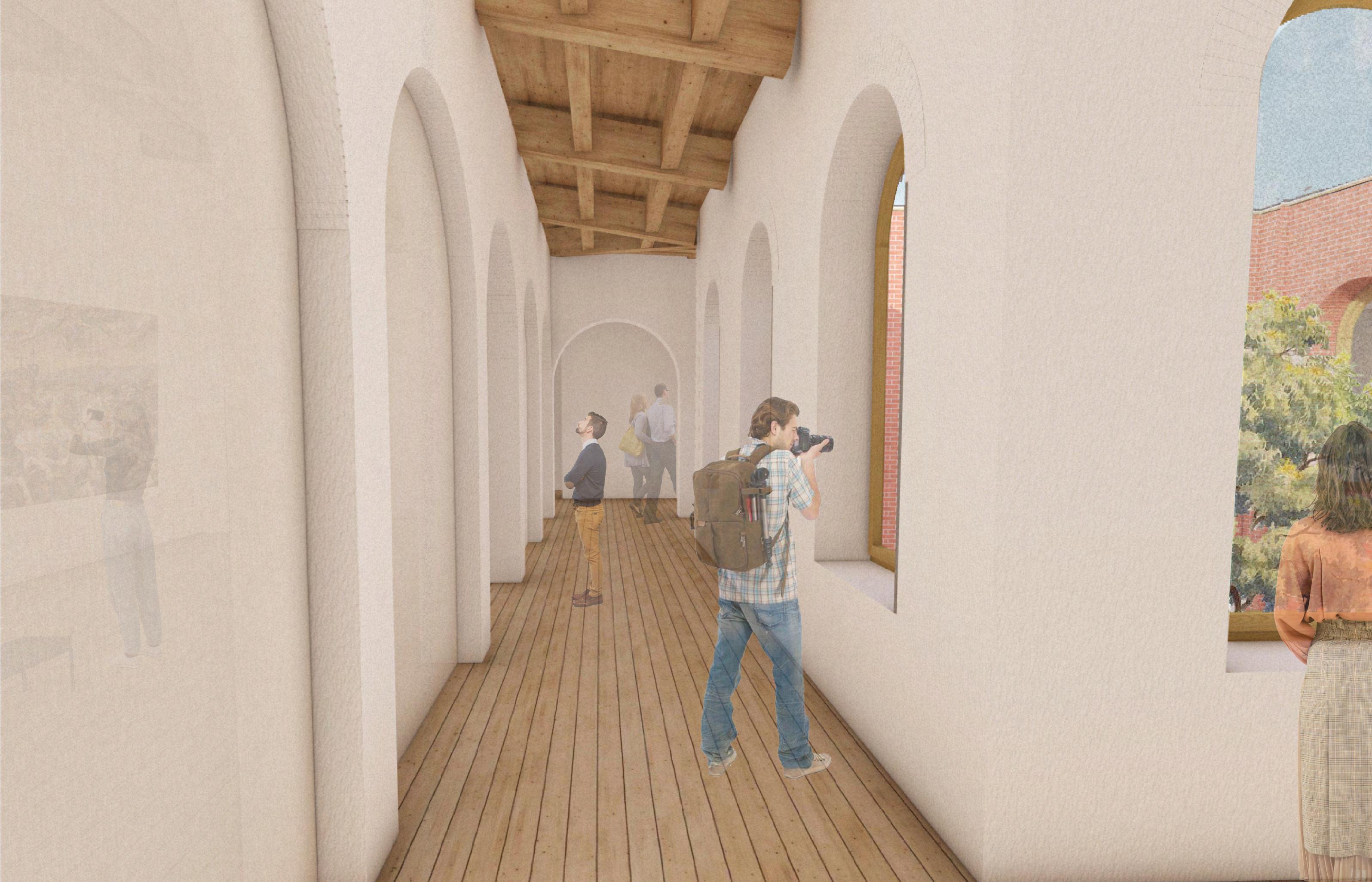 Das Atrium verfügt über ein offenes Erdgeschoss, das die Bewegung und Aussicht ermöglicht und die Besucher einlädt, einzutreten. Das Erdgeschoss ist den öffentlichen Funktionen gewidmet, während die oberen beiden Stockwerke die Ausstellung beherbergen. Das Gebäude ist zum Zentrum, nämlich zum Innenhof, hin ausgerichtet, was ein Gefühl von Ruhe und Sicherheit schafft, wo die Besucher vom Weg ausruhen können. Das Museum ist ein Ort für Bildung, Erholung und Kultur und ergänzt den modernen Fortschritt des Stadtteils Flaminio. So verwandelt sich der nördliche Eingang Roms von einem verkehrsorientierten Ort in ein neues kulturelles Zentrum für die Menschen, das sich in die Traditionen und die Geschichte des antiken Roms einfügt.