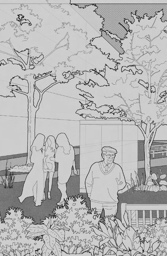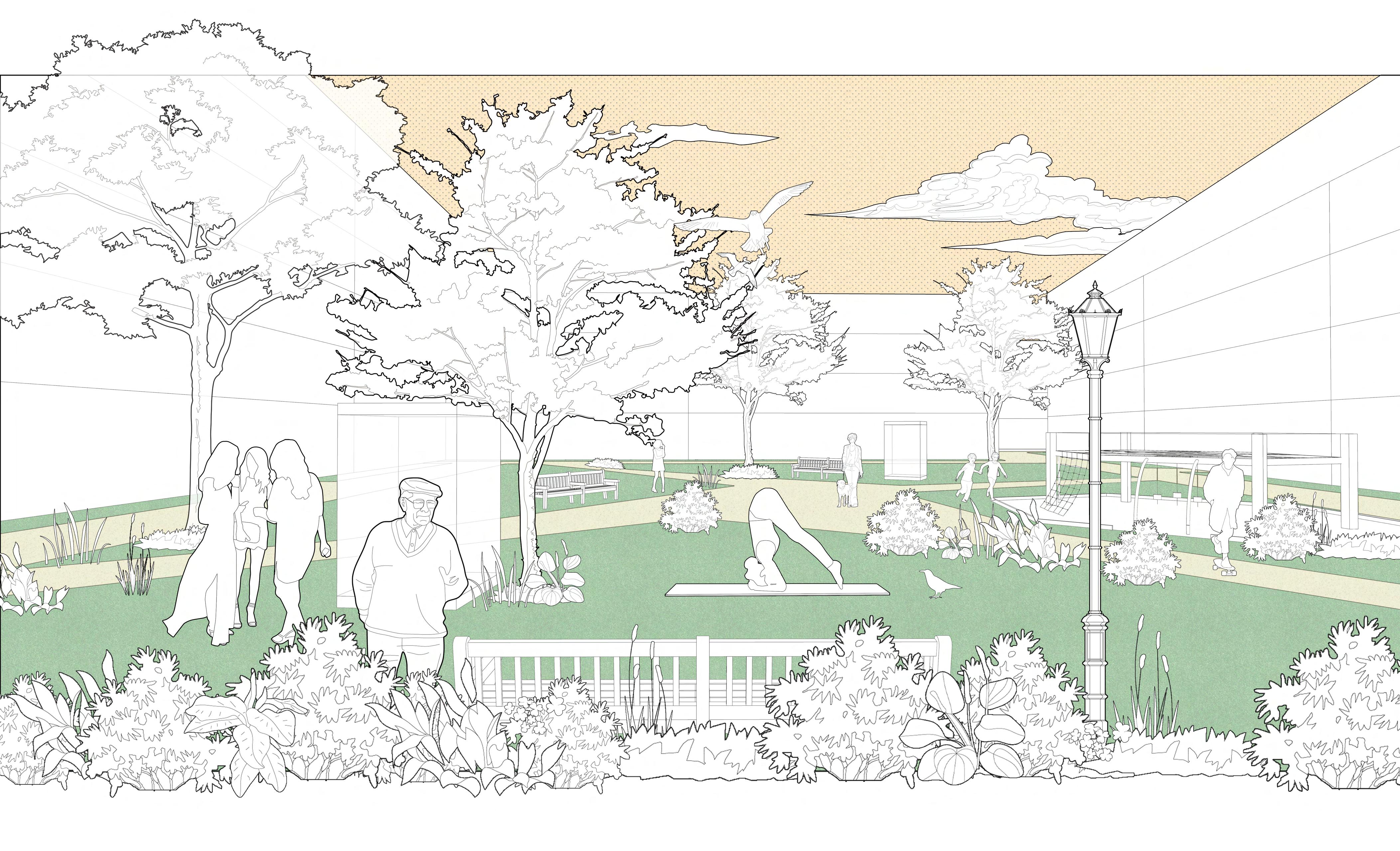 Der Entwurf bietet eine Vielzahl von Aufenthaltsmöglichkeiten und soll zu einem Ort für die gesamte Gemeinschaft im Quartier werden. Die große Anzahl und Diversität an Außenraumangebote soll Besucher anziehen und zu einem sozialen und wissenaustauschenden Treffpunkt in Berlin Moabit beitragen.