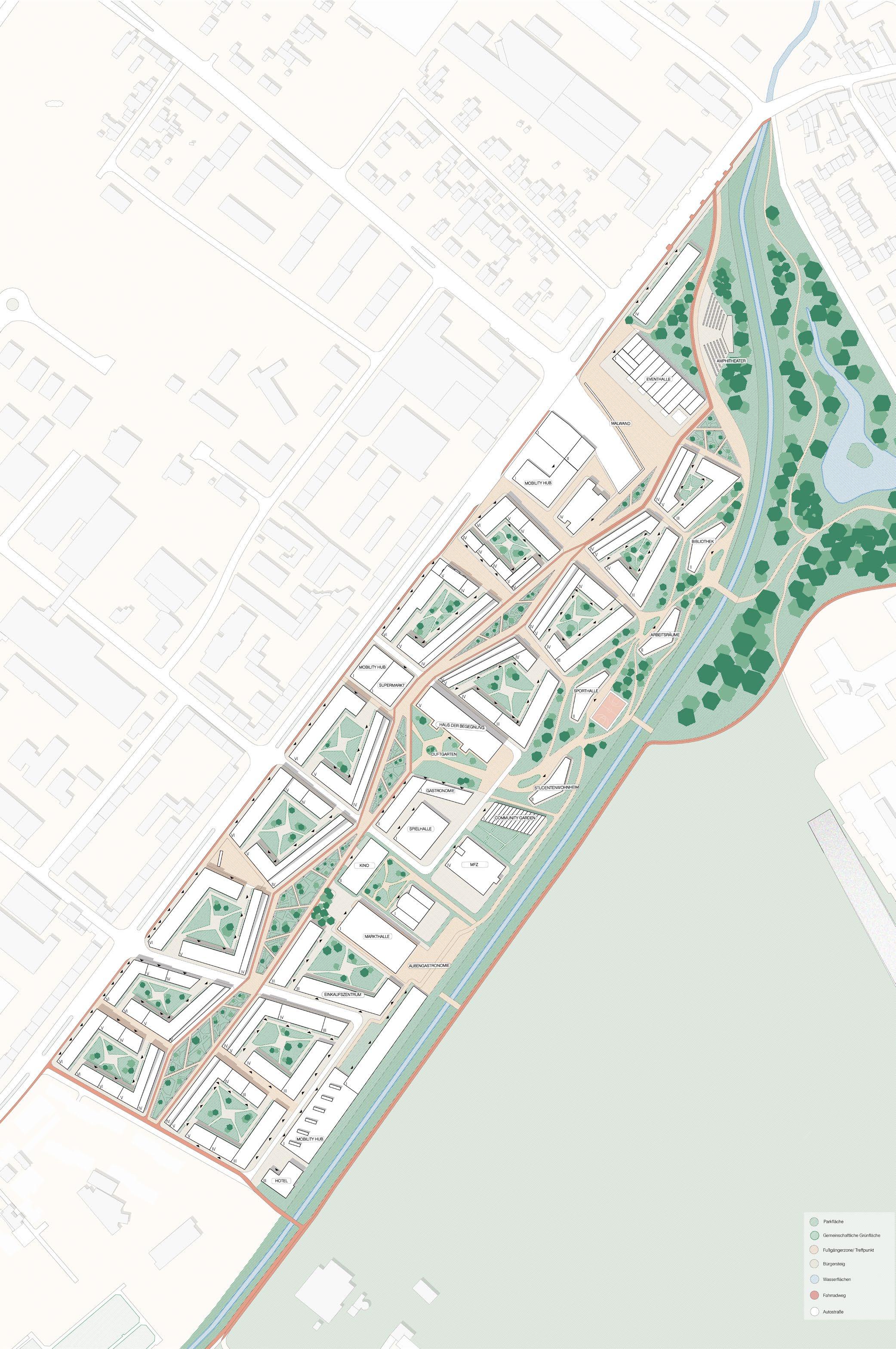 Im Rahmen des Stadtprojekts haben wir uns der Herausforderung gestellt, die Industriezone Aachen Nord an der Jülicher Straße umzubauen. Diese Gegend ist derzeit von Heterogenität und Unfunktionalität geprägt. Unser Ziel ist es, durch eine innovative Mischnutzung der neuen Bauten eine harmonische Verbindung von Wohnen, Arbeiten und Freizeit zu schaffen. Durch die lockere Hofbebauung entstehen unterschiedliche und einladende Außenräume, die den Menschen intuitiv auf ihrem Weg durch das Quartier leiten. Diese Bauweise fördert nicht nur die soziale Interaktion, sondern schafft auch ein Gefühl der Gemeinschaft und Zugehörigkeit. Wir legen besonderen Wert darauf, dass dieser neue Aachener Stadtteil die Bedürfnisse und Wünsche verschiedener sozialer Klassen berücksichtigt. So entsteht ein Quartier, das die Vielfalt und den sozialen Zusammenhalt der Stadt Aachen widerspiegelt und stärkt.