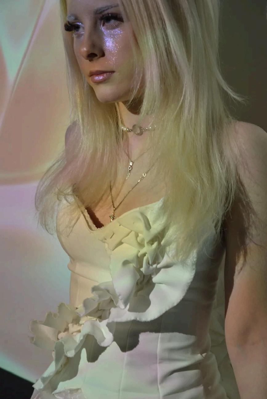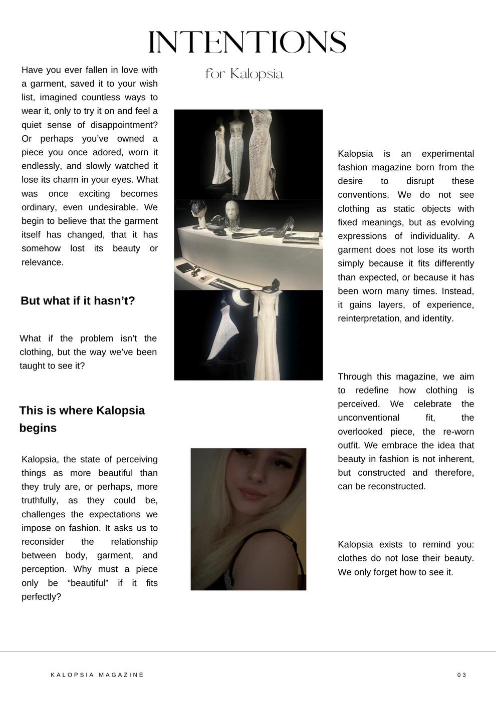 Kalopsia is about seeing beauty where it is not expected. The piece I’m wearing is made by hand.