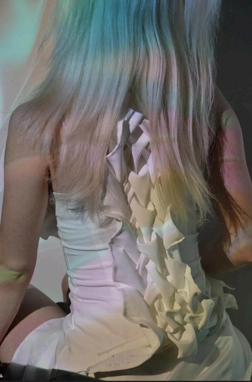 The rips become pattern. what looks broken starts to feel intentional. The collection follows the same colour pattern and uses texture to show beauty.