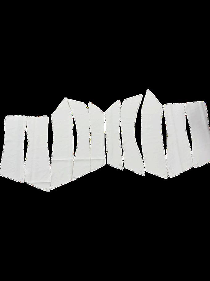 For the corset I cut my material into the corset pattern, which I made using tape I put onto my torso, with this method you get the exact measurements you need.