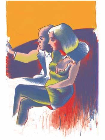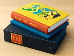 and the couple, themes I have been exploring for decades. There is a part of the novel where Bernard and Lenina, two central characters, travel from ‘civilised’ London to a reservation in New Mexico to see the monogamous people (above, left). This section appealed to me because it reminded me of a road trip I had taken during the 1960s having just moved to New York. One day the Pop artist Peter Phillips rang me and said, ‘Hey, I’ve been given a car for free. Why don’t we take a ride?’ I cancelled a teaching job I had lined up and we drove across the US. While travelling through the desert we stopped at a Native American reservation, which had become a tourist attraction. Having seen how this traditional way of life was treated as a spectacle, I felt I had a sense of what Huxley was writing about. Every part of the new edition, from the binding to the goatskin cover and box, is