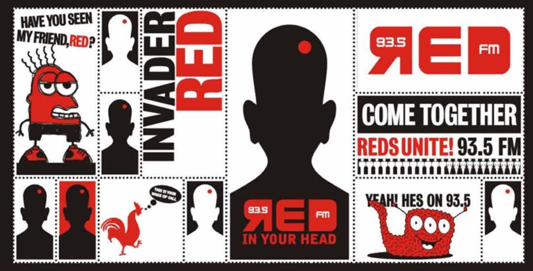 background and brief : When this FM station was launched, it wanted to be like a cult radio station which played choice music and have the right degree of cool. our approach : Russia meets rocknroll! This came from the name. With the theme line ‘get red in your head’ we could give the brand a minimal. Strong and alternative radio station appeal.