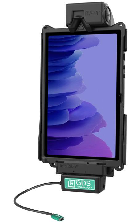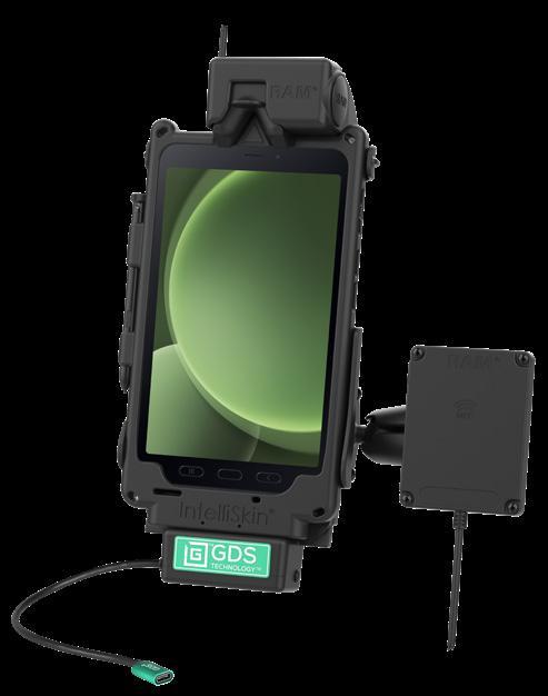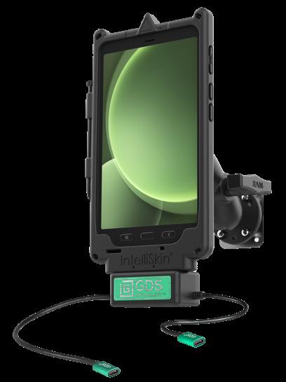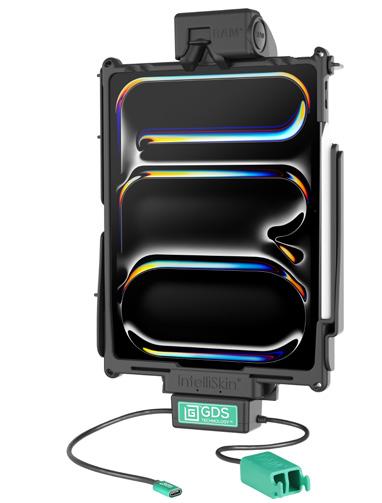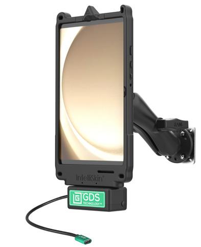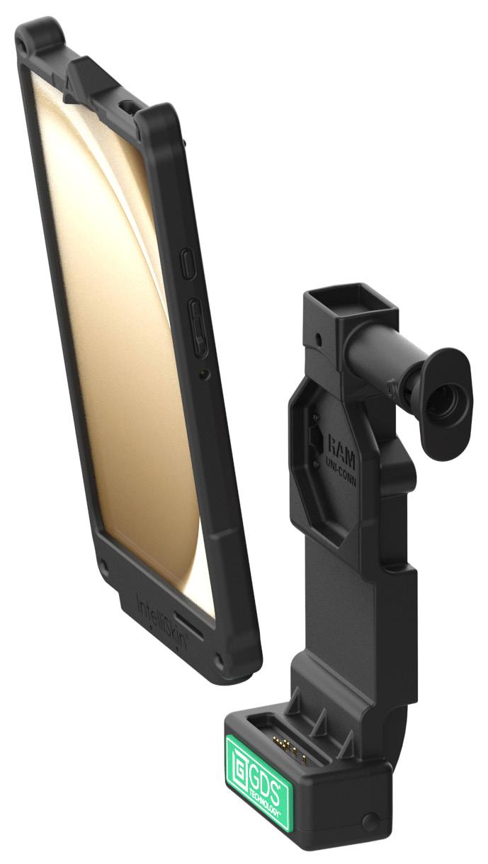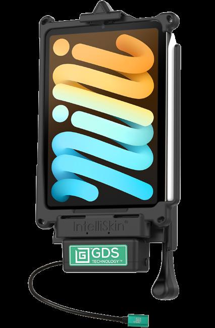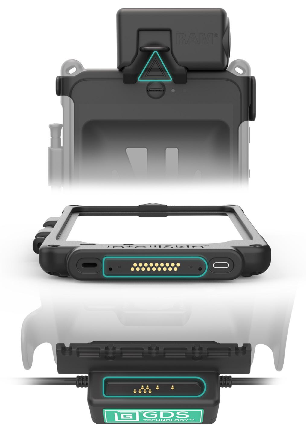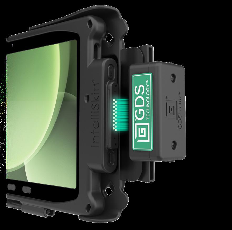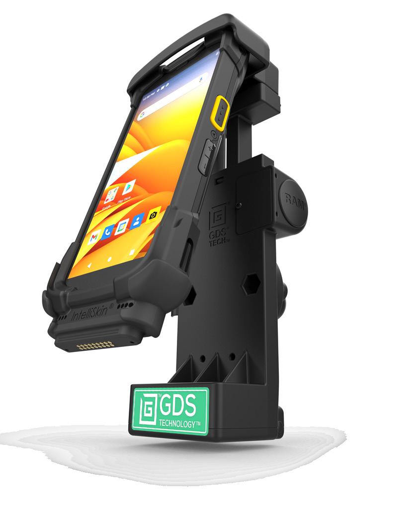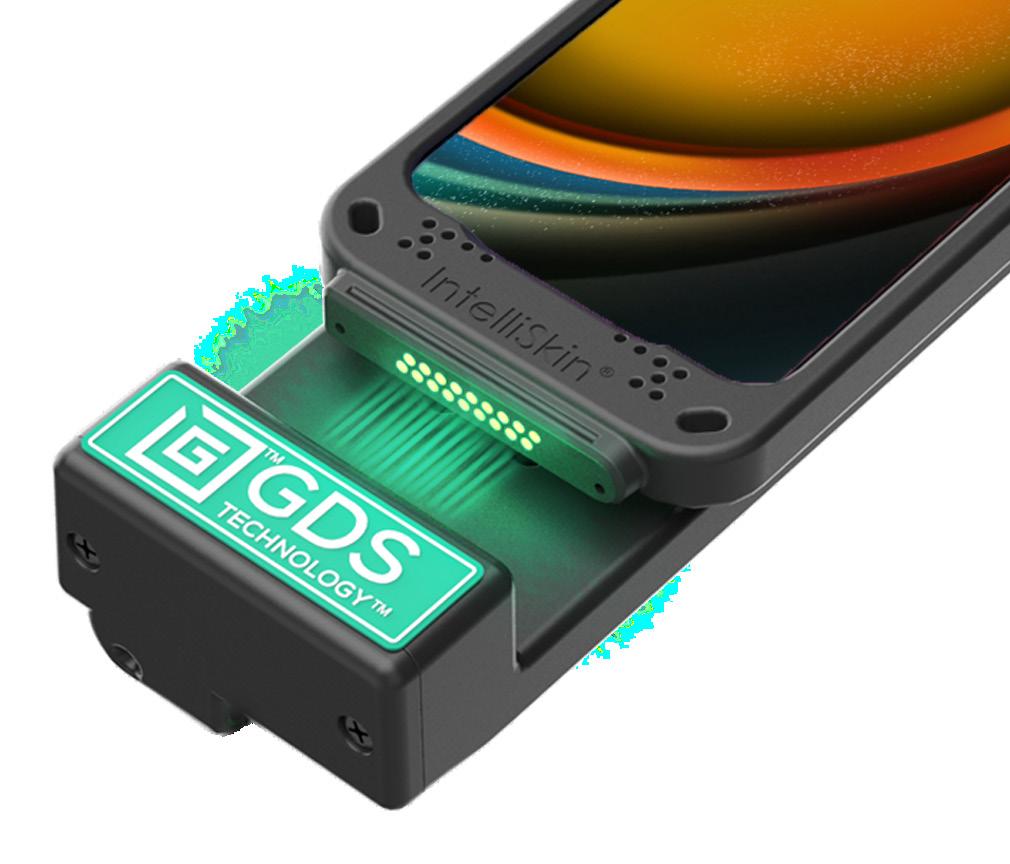 GDS® Tech™ is an enterprise device mounting ecosystem that provides rugged protection, charging, and data sync capabilities. This ecosystem is enabled by IntelliSkin®, a patented, one-of-a-kind protective sleeve that utilizes pogo pads for connectivity rather than USB ports. Paired together, GDS® Tech™ and IntelliSkin® deliver a workflow-centric experience and are purposefully built for cost-efficient upgrades, making them the preferred solution for industries such as material handling, transportation, field service, and more.