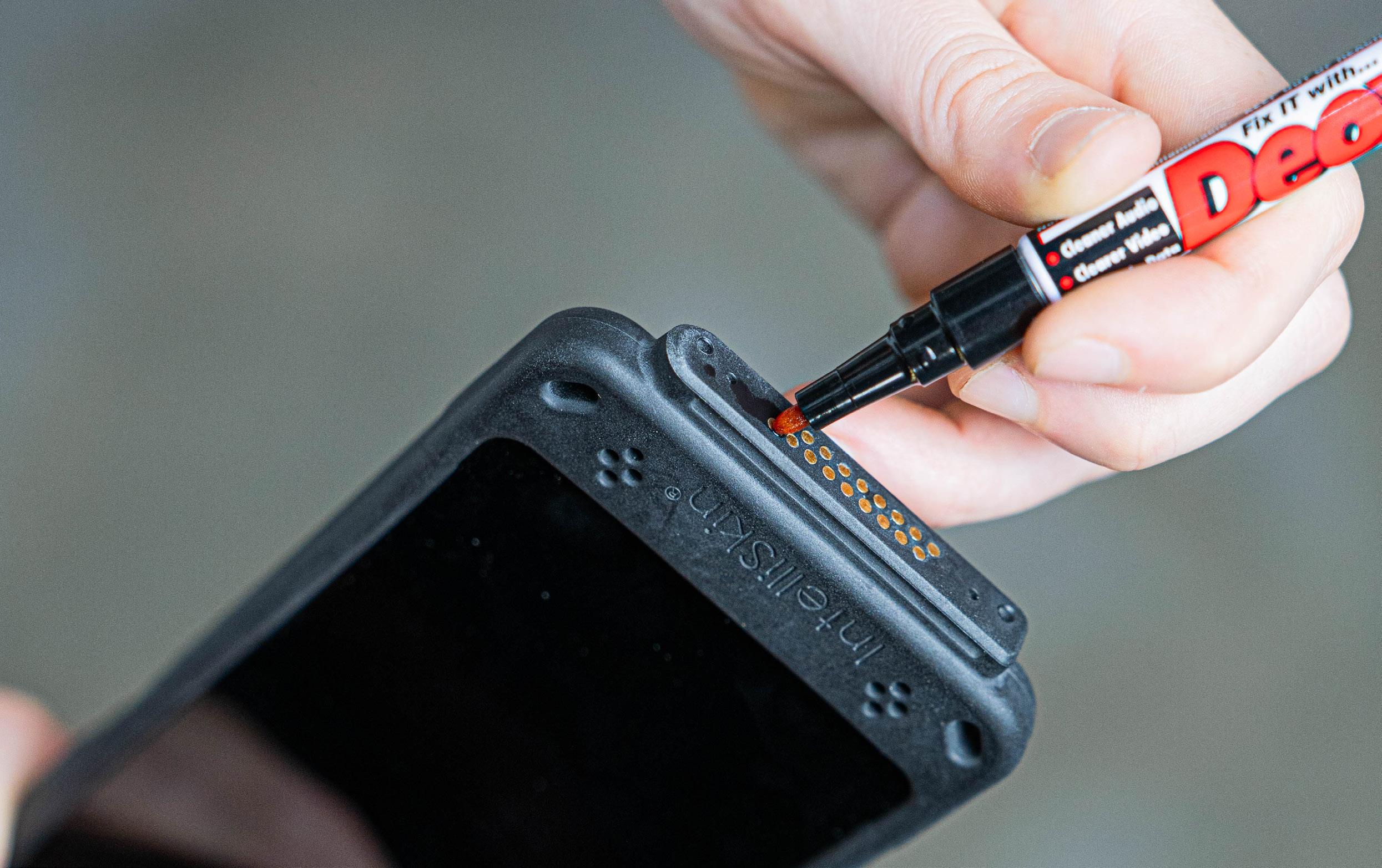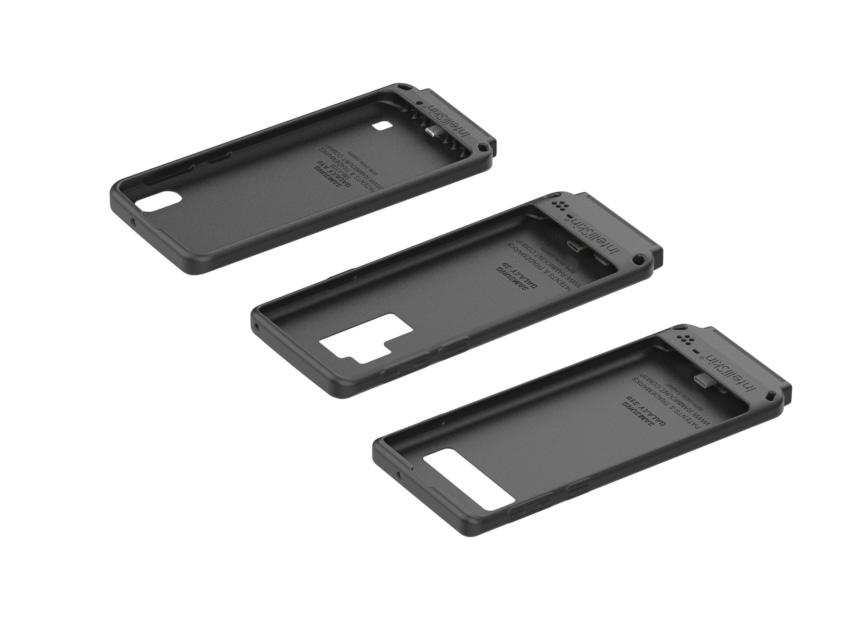 Each IntelliSkin® includes integrated attachment points for ergonomic accessories like hand straps, shoulder straps, and more.