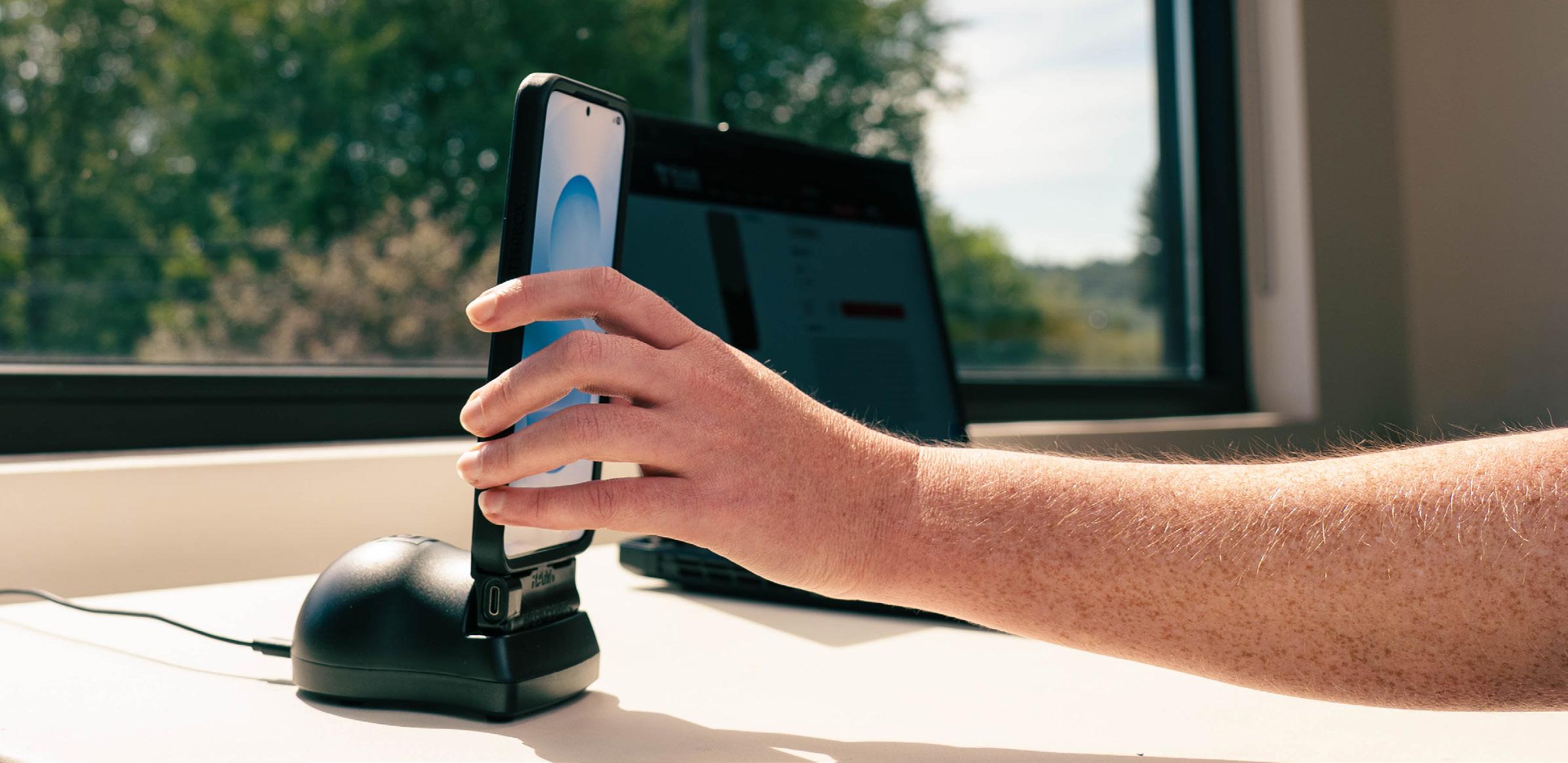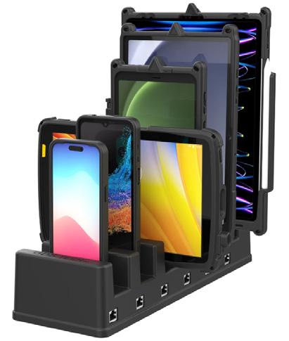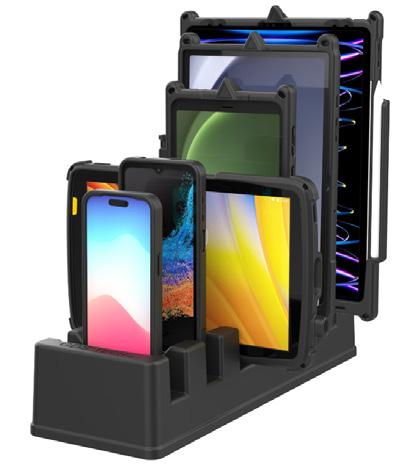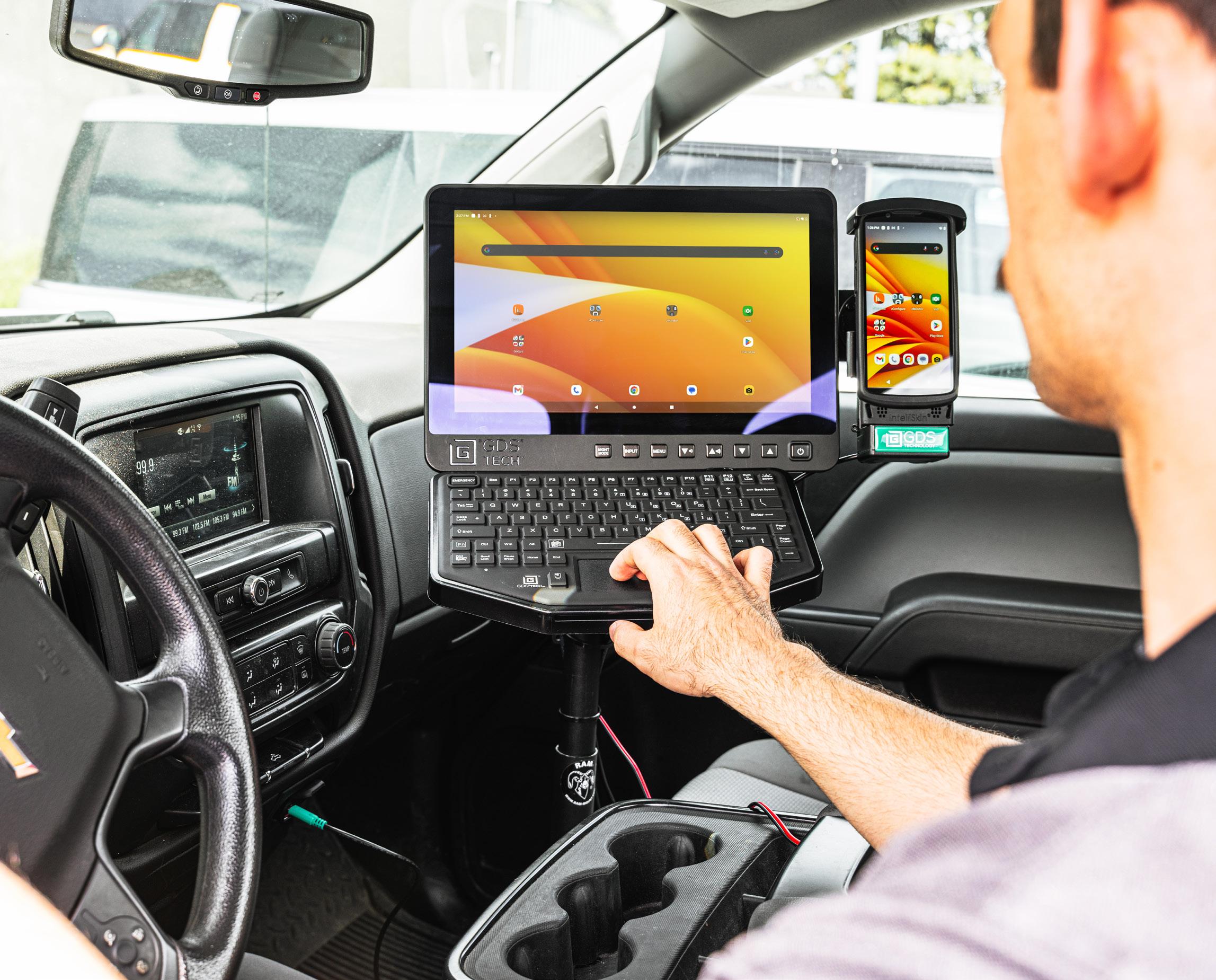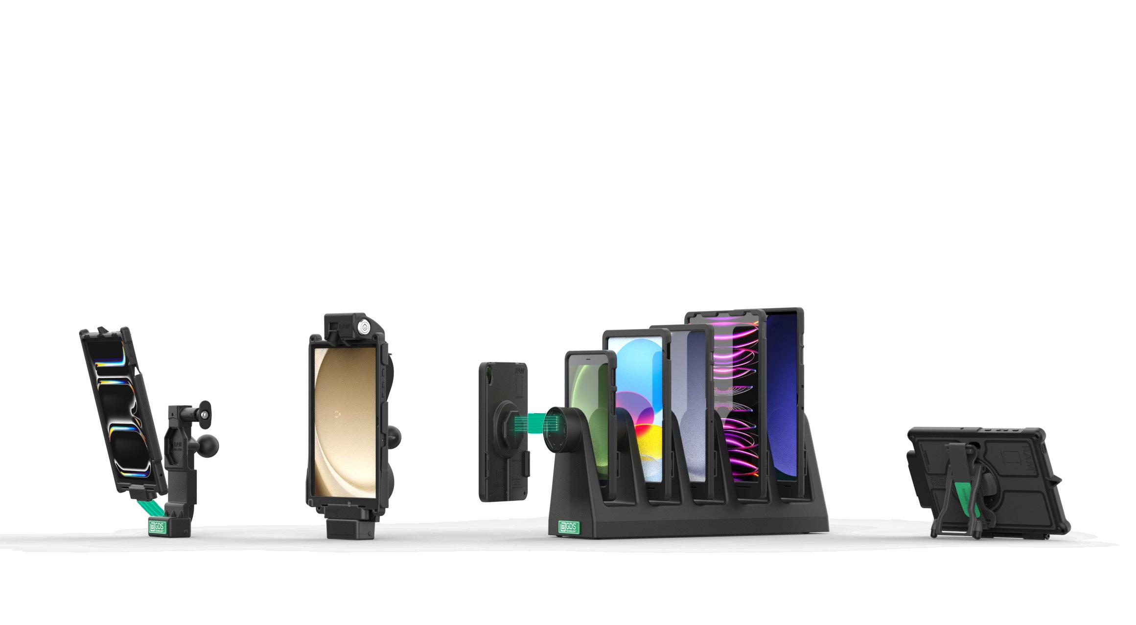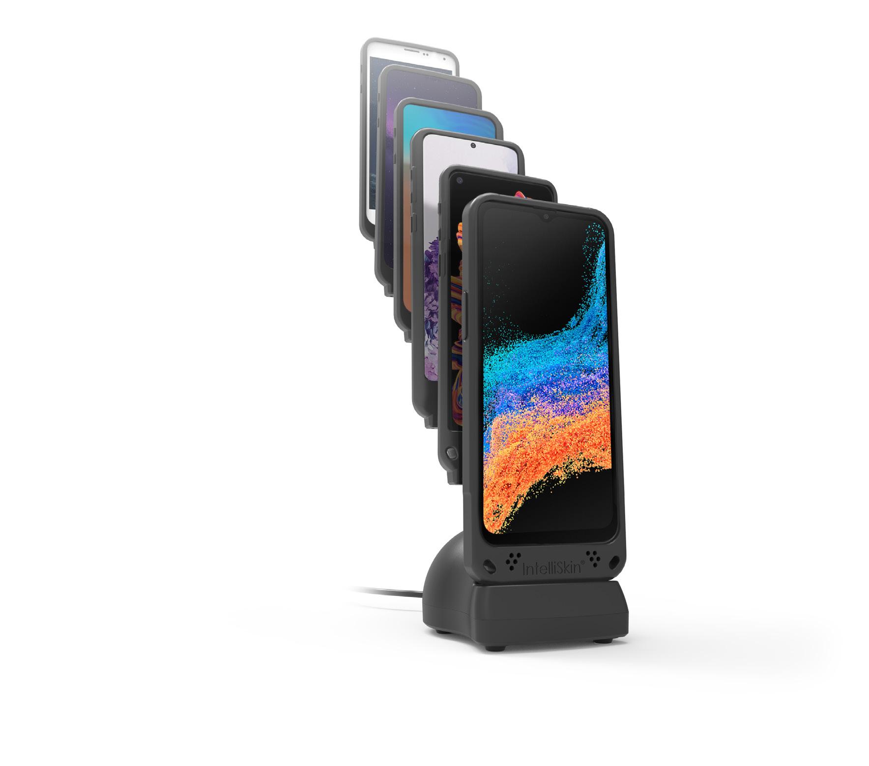 Each IntelliSkin® delivers a precise, form-fit that preserves full access to buttons and cameras, while converting the USB-C port into rugged pogo pin contacts. This unlocks the GDS® Ecosystem™ of vehicle, desktop, and wall docks—plus a full range of ergonomic accessories.
