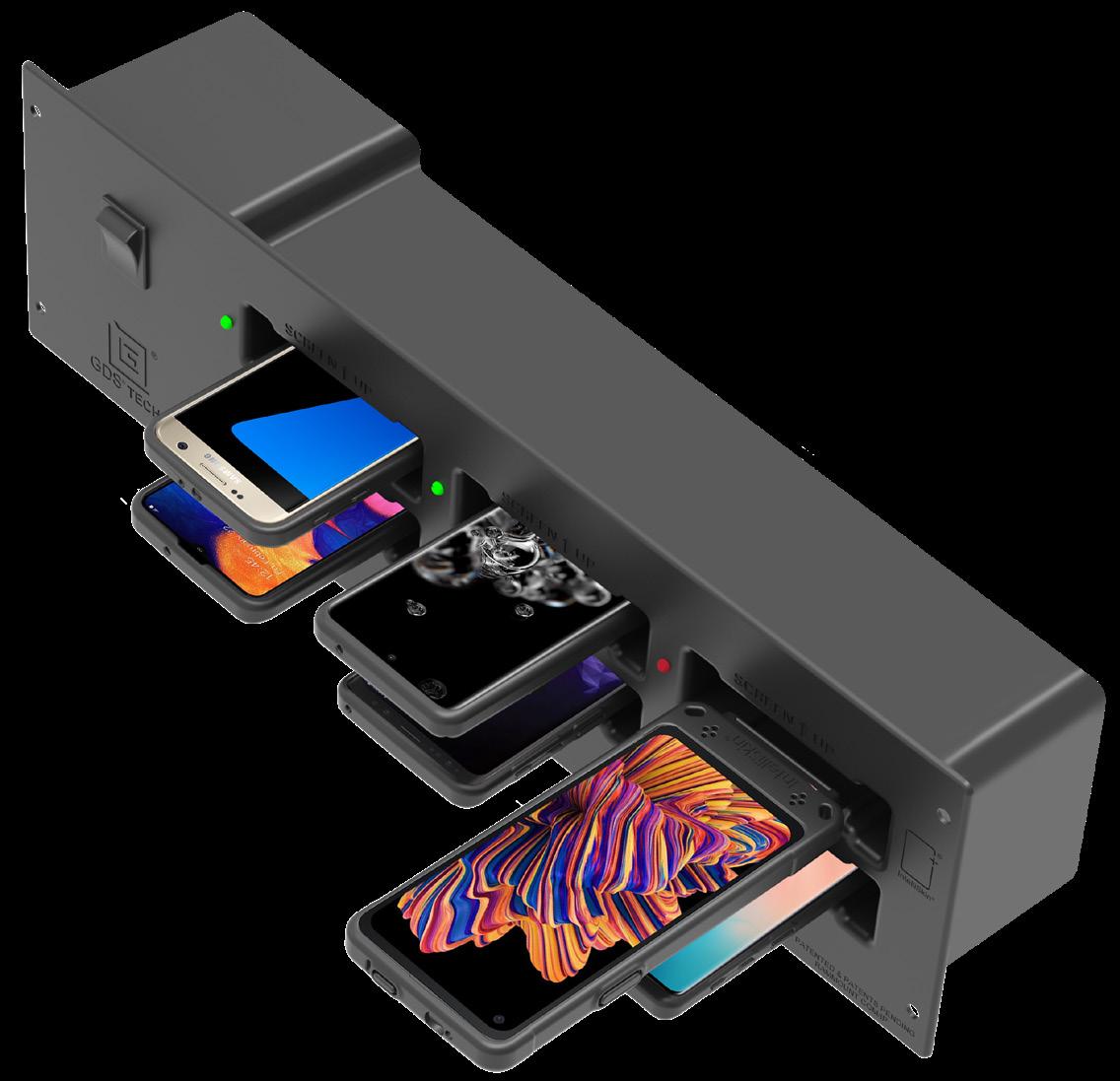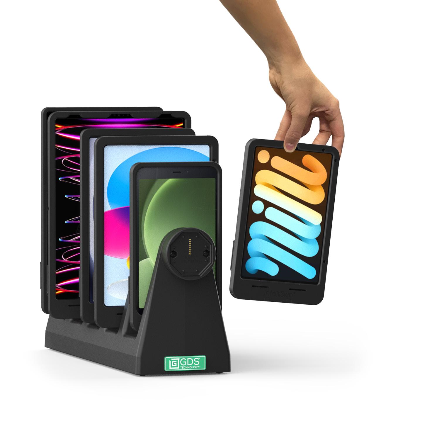 Utilizing GDS® Pogo Pin Technology, this multiport charging station charges any IntelliSkin®—wrapped device