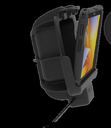 Accommodates Zebra expanded back accessory for hand strap attachment, secondary PowerPack battery and includes dual USB connector for peripheral add-ons