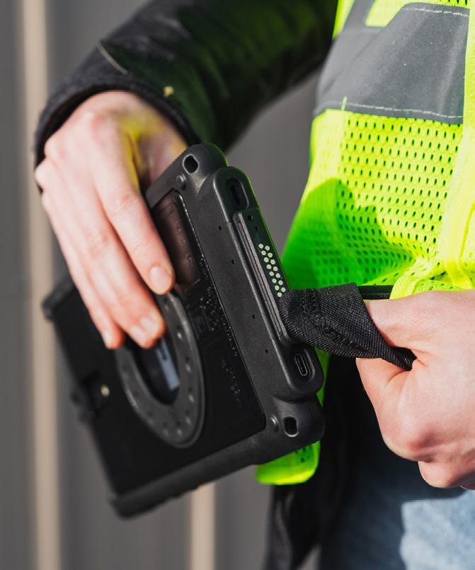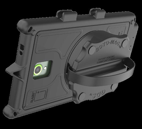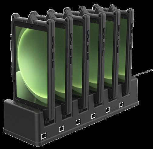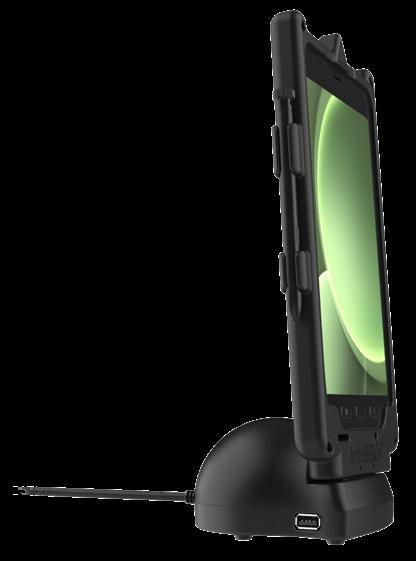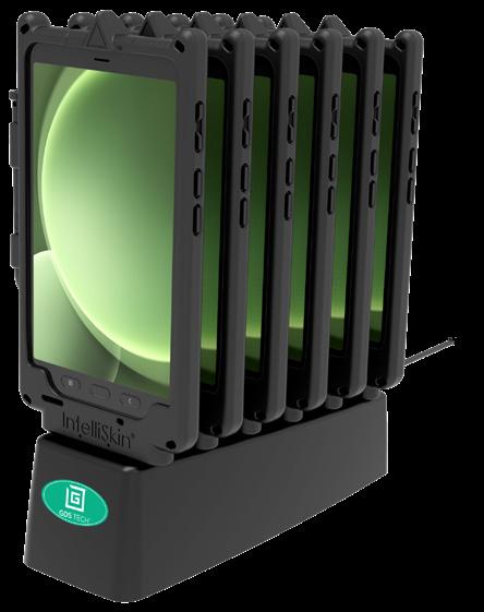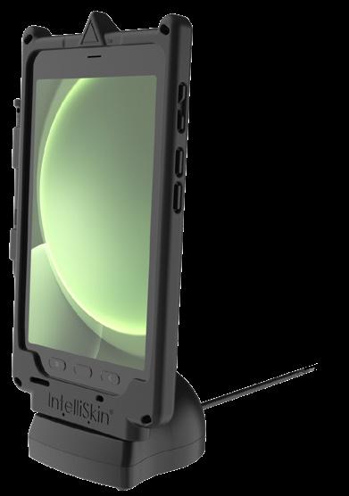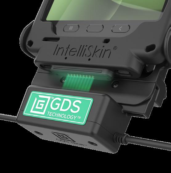 Each IntelliSkin® is uniquely built to protect the device using soft, shock absorbing rubber with an internal USB-C connector that protects the device and its ports while converting the connection point to flat pogo pad docking contacts that are easy to clean. Added access to a USB-C port allows connection to the device when not using a GDS® Dock™.