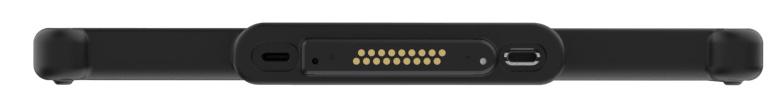 Each IntelliSkin® is uniquely built to protect the device using soft, shock absorbing rubber with an internal USB-C connector that protects the device and its ports while converting the connection point to flat pogo pad docking contacts that are easy to clean. Added access to a USB-C port allows connection to the device when not using a GDS® Dock™.