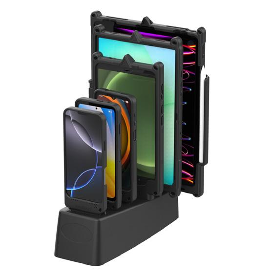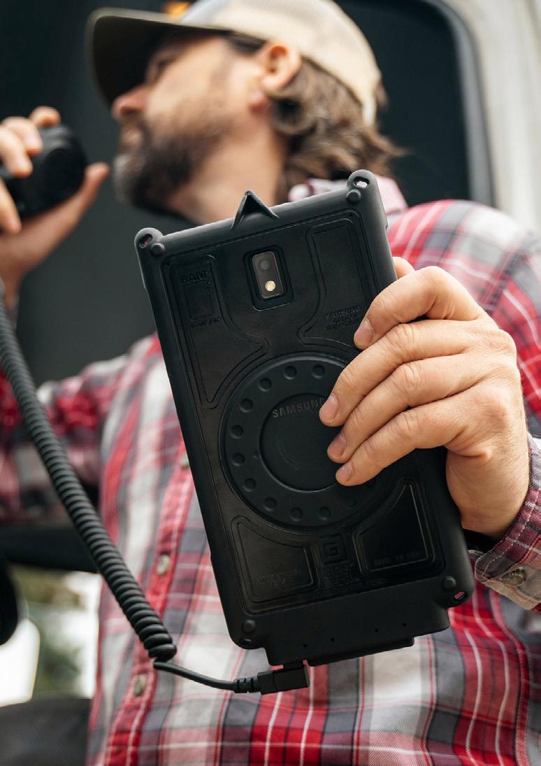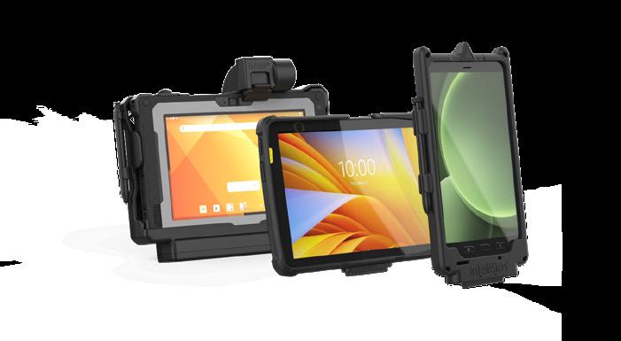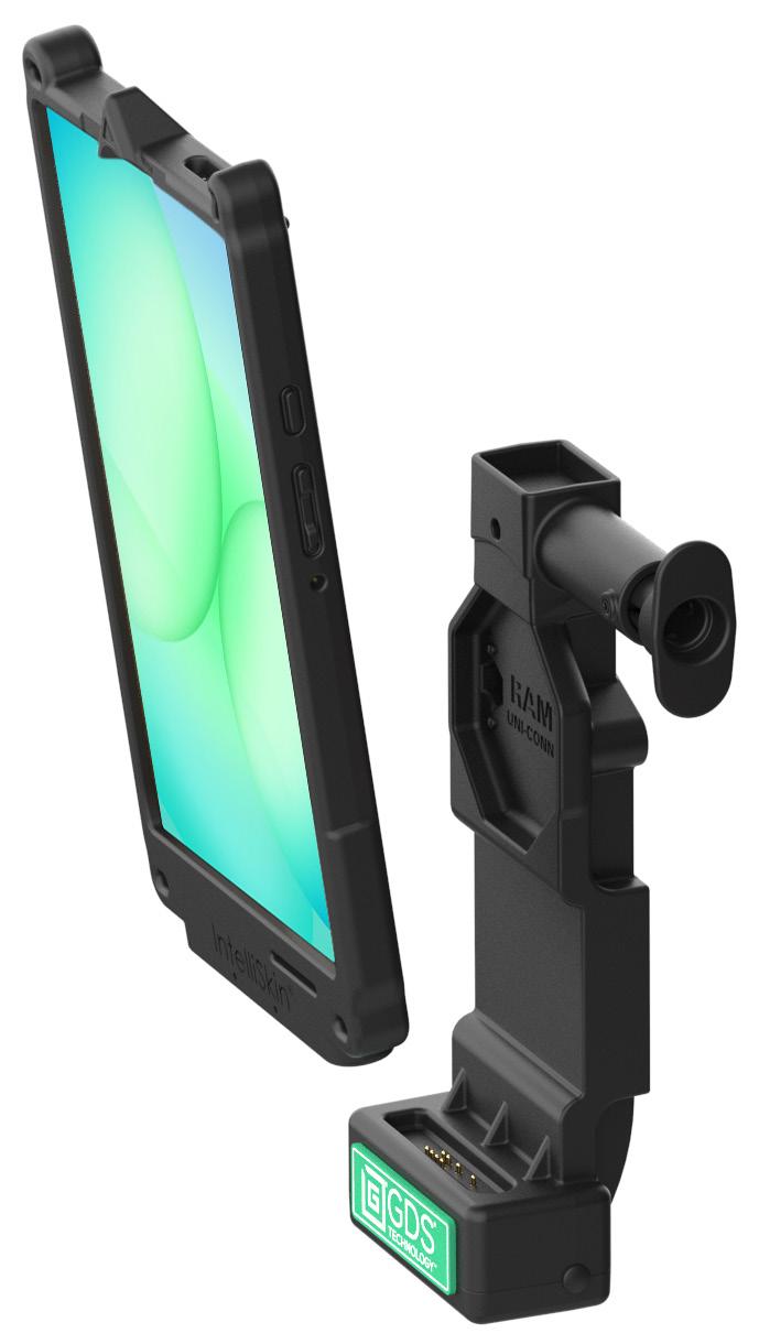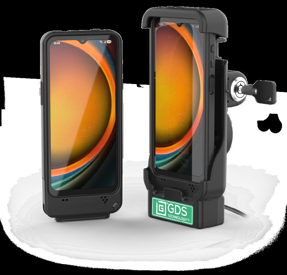 Each IntelliSkin® delivers a precise form-fit that preserves full access to buttons and cameras, while converting the USB-C port into rugged pogo pin contacts. This unlocks the GDS® Ecosystem™ of vehicle, desktop, and wall docks—plus a full range of ergonomic accessories.