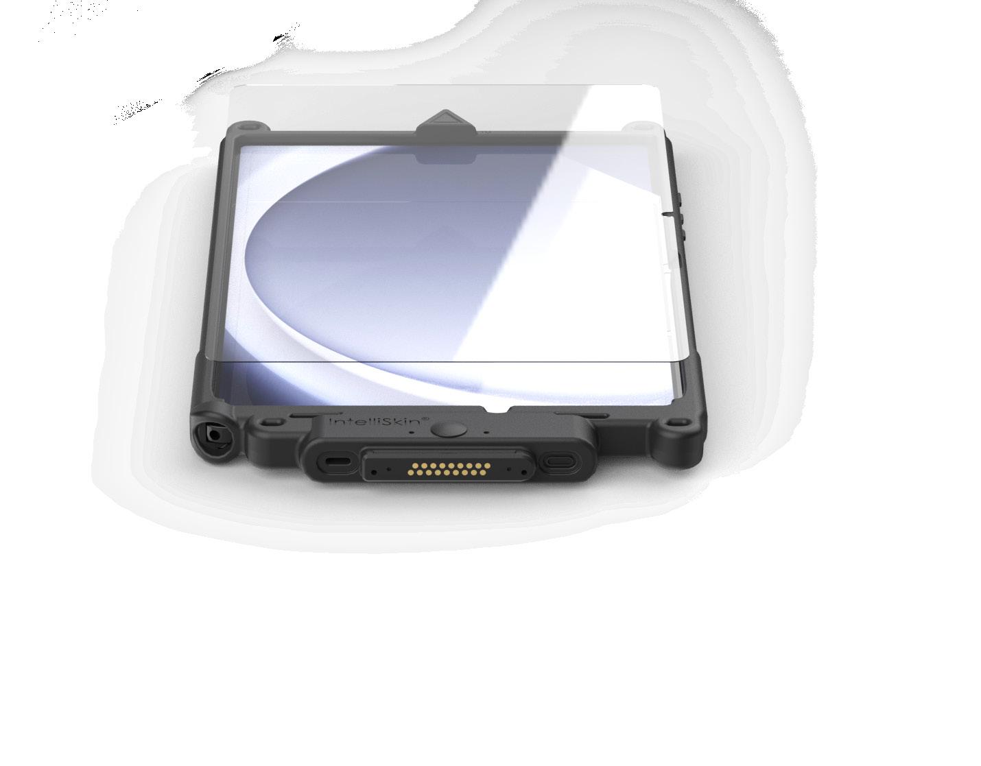 IntelliSkin® is the only case system on the market that protects the device port and converts that connection point to ruggedized pogo pads for charging and data transfer.