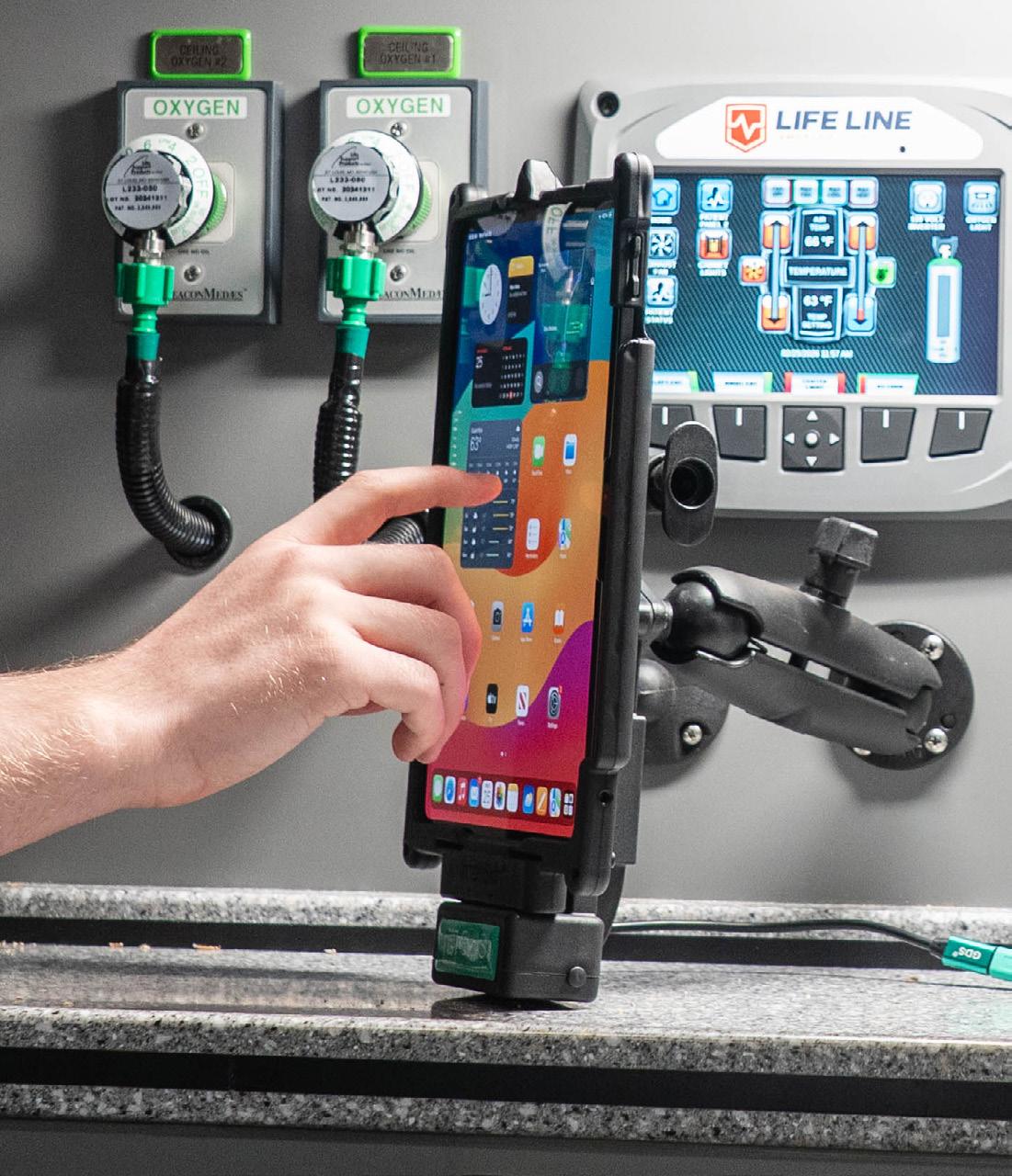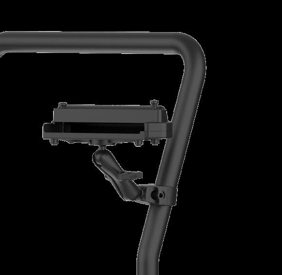 Rotation feature on Friction-Lock™ Hinge Mount allows device to easily move out of sight, keeping controls accessible. SEEN IN THIS PHOTO: