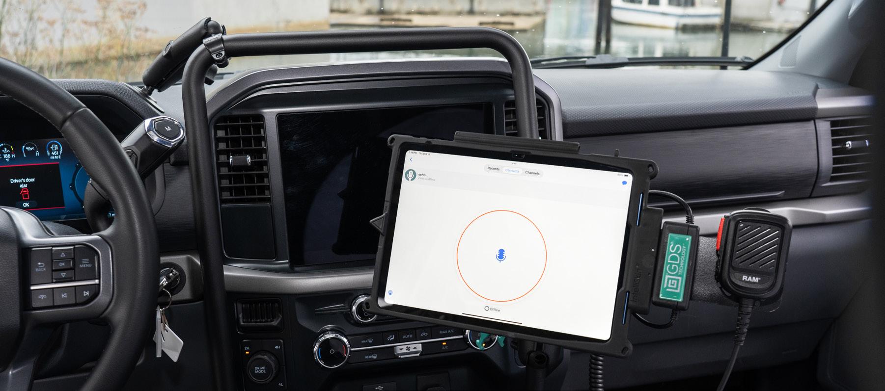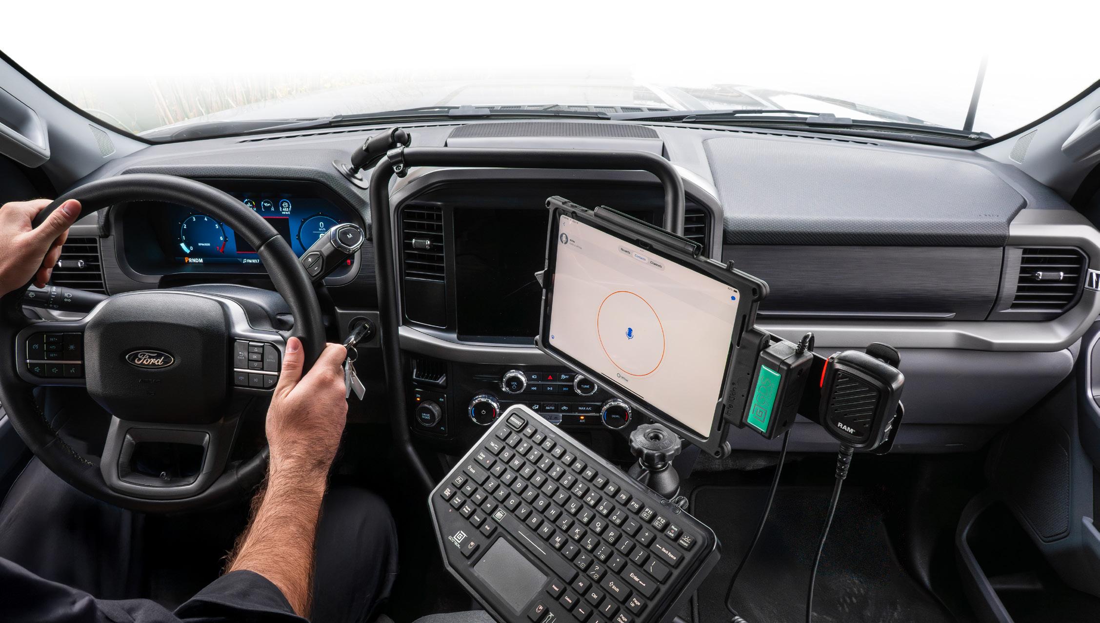 RAM® Tough-Bar™ keeps field workers seamlessly linked to fleet communications while managing tasks on the move Phone & Radio Mounts