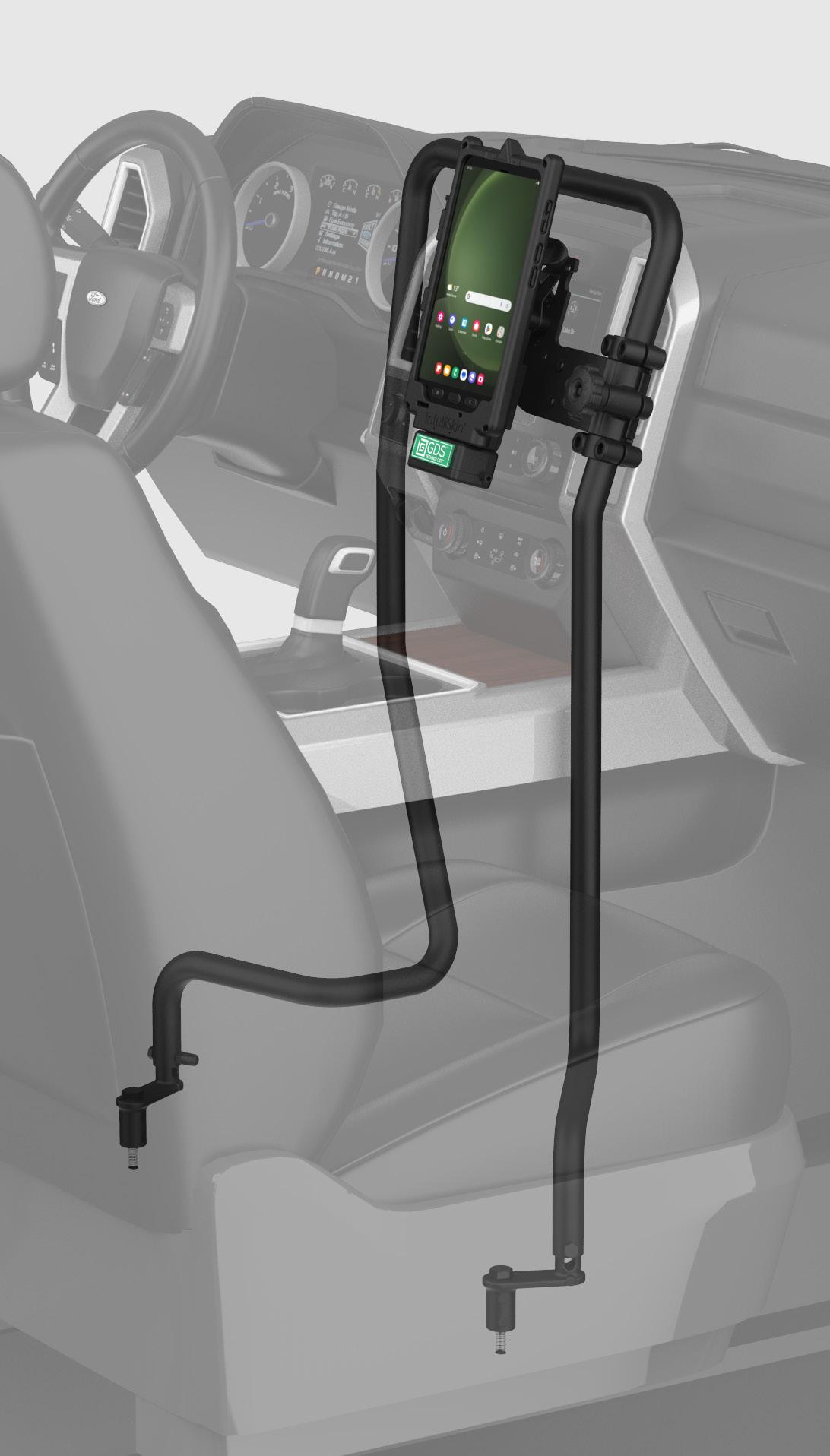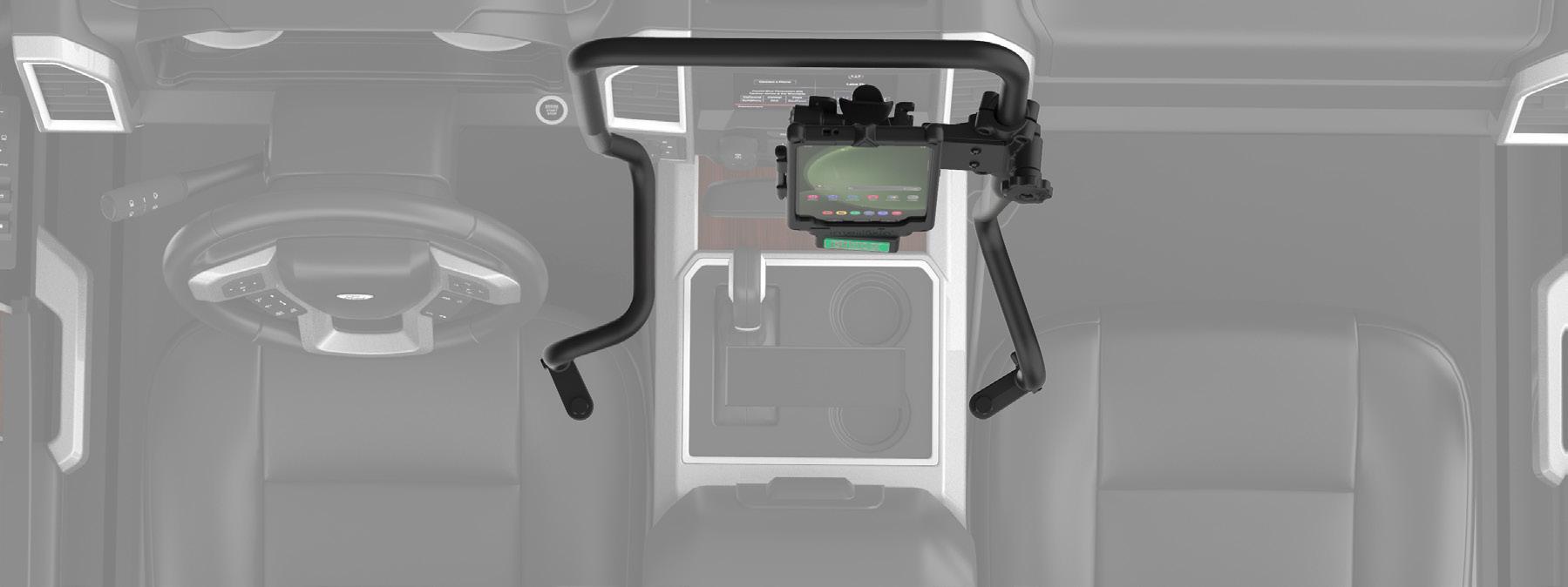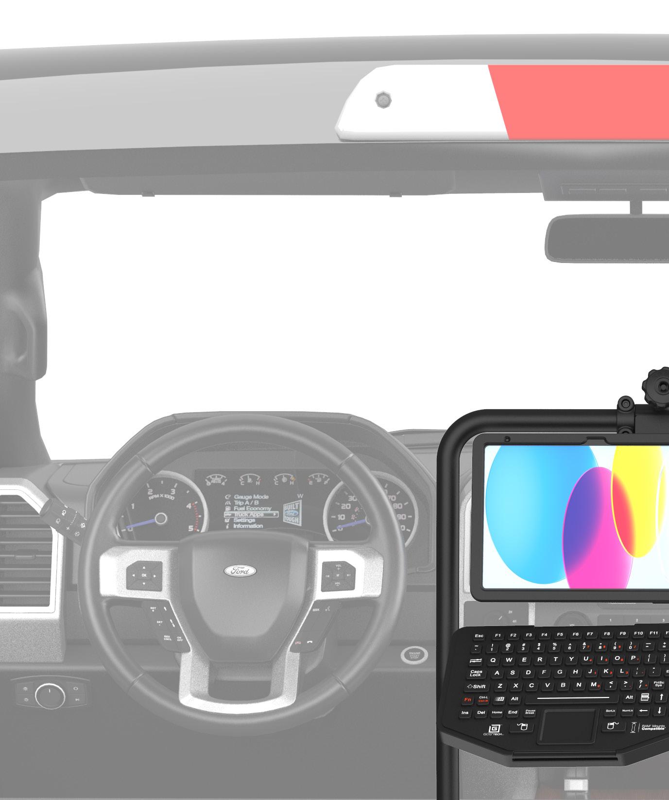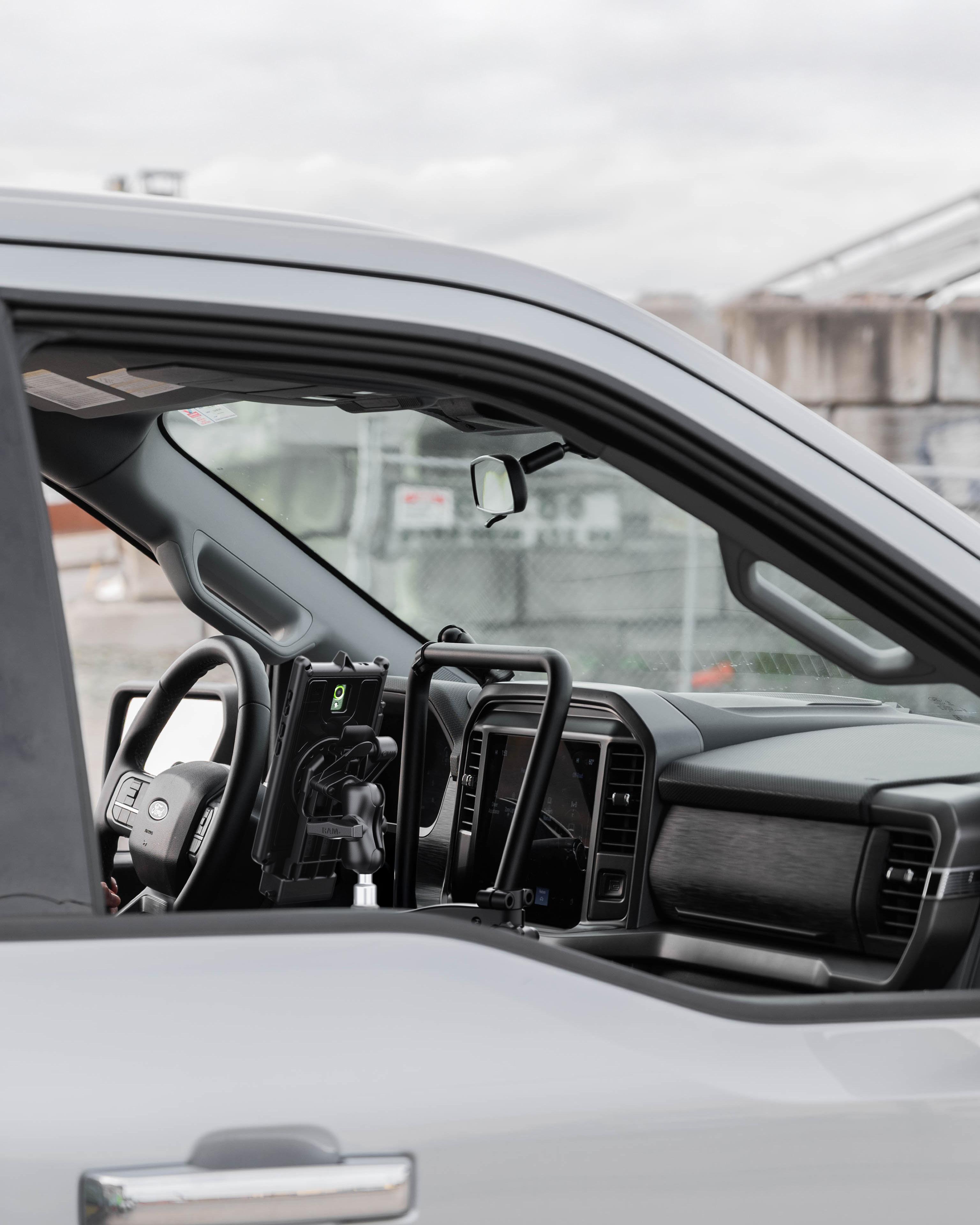 The RAM® Tough-Bar™ delivers a durable, secure, and ergonomic mounting solution for in-vehicle devices. With three secure connection points, built-in collar locks for added protection, and a low-profile design for extra legroom, this upgrade keeps devices front and center at eye level —reducing neck strain while ensuring quick dash access.