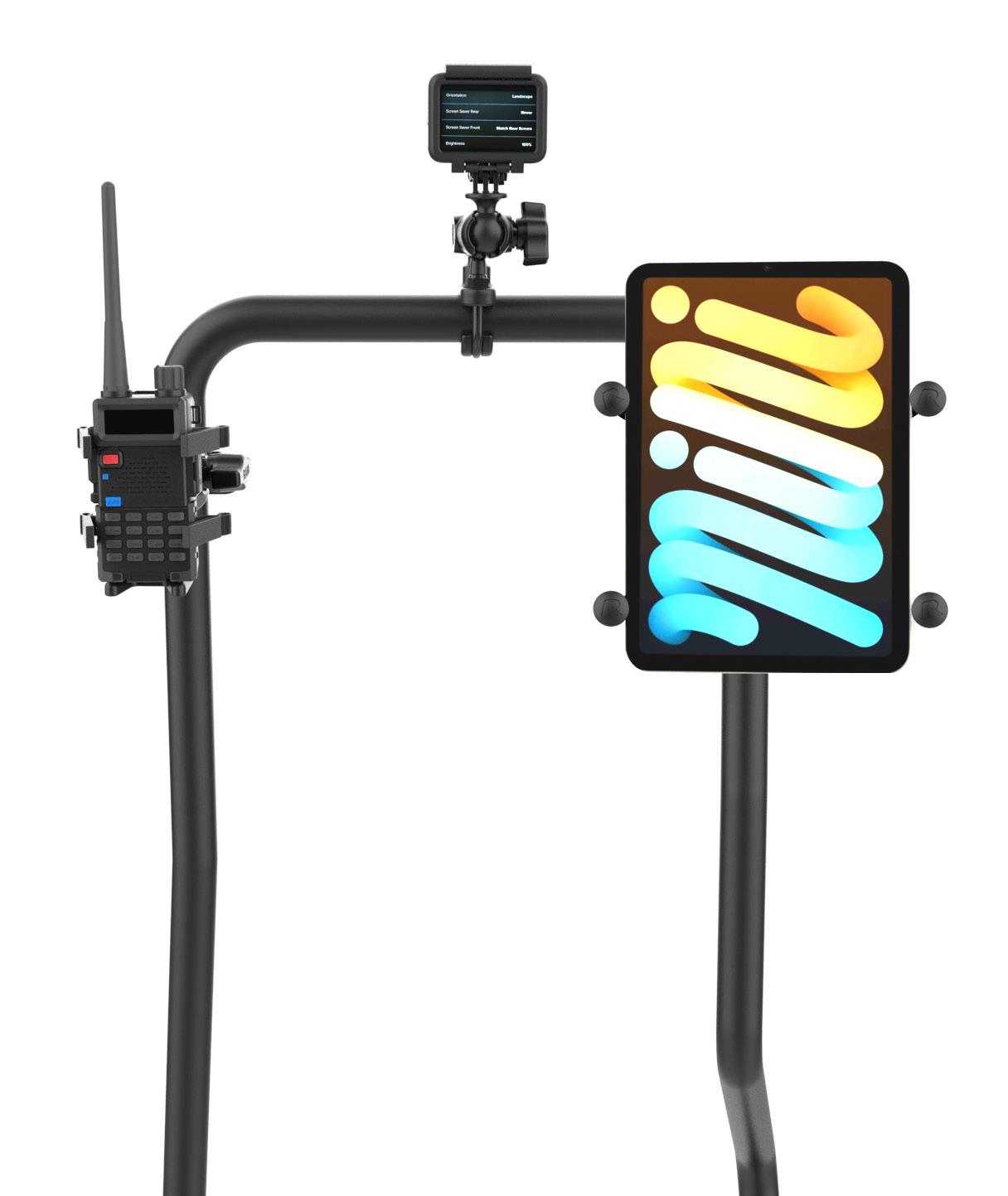 With the RAM® Tough-Bar™, you can set things up just the way you like. Configure it to hold tablets, laptops, phones, cameras, guns, lights, and accessories securely—keeping your devices safe, accessible, and right where you need them.