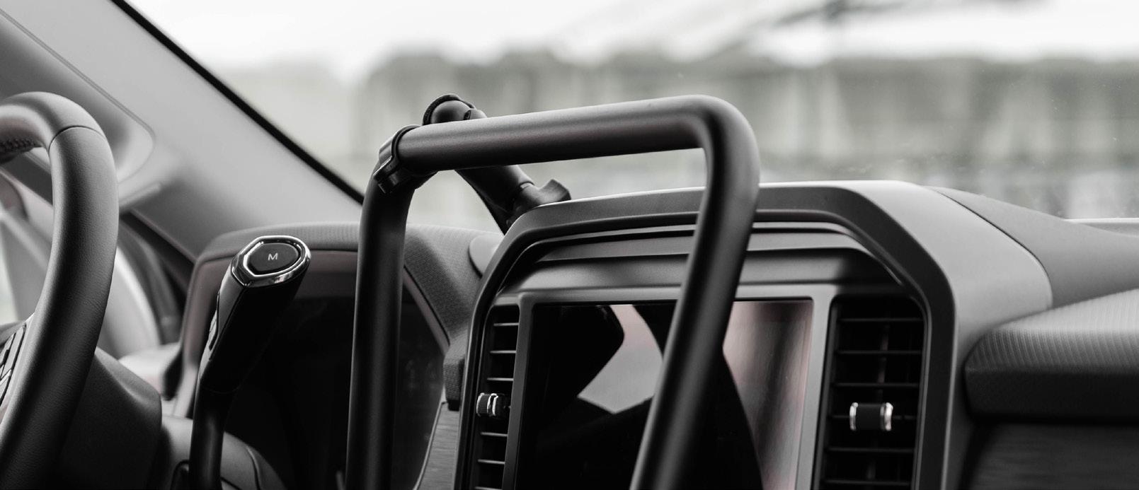 The RAM® Tough-Bar™ is engineered with safety at its core, keeping your devices secure without interfering with airbags, visibility, or vehicle controls. Its low-profile design minimizes distractions while ensuring critical gear stays firmly in place, even on rough roads. With the Tough-Bar™, you can drive with confidence knowing your setup is as safe as it is functional.