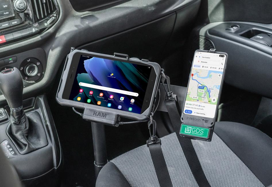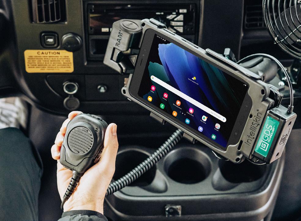 When these smart trucks collect recyclables from customer bins, a cutting-edge system kicks into gear. Live cameras and sensors scan the materials, while the AI centralizes the data and uncovers opportunities for service improvements. Challenges include overfilled containers, bins not placed out for service, and incorrect recycling materials. For this system to work, each driver is equipped with a Samsung Tab Active3 and a RAM® Mounts docking solution. In this case, the large recycling organization needed a scalable solution and RAM®’s connective product line “GDS® Tech™ & IntelliSkin®” was the ideal choice to deploy in thousands of trucks. The goal was to ruggedize the system, keep devices charged, and connect the tablet to the vehicle’s gateway where data from the AI program, as well as vehicle diagnostics, are stored.
