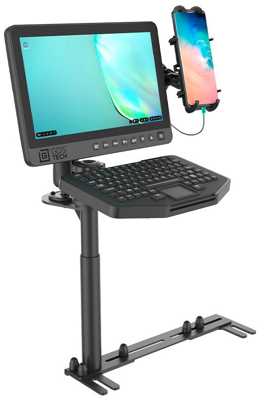 The GDS® Ecosystem™ Bundle is the all-in-one solution for introducing Samsung DeX into your workflow. This bundle includes a GDS® View™ 13.3” touchscreen monitor, a GDS® Keyboard™, display bracket, universal vehicle mount, phone mount, and hardwire chargers to transform your vehicle into a mobile office. Simply insert your DeX-enabled Samsung phone and connect your device to the workstation so you can work on the go.