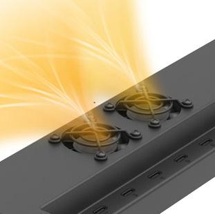 Open enclosure on front and back allows heat to flow from device