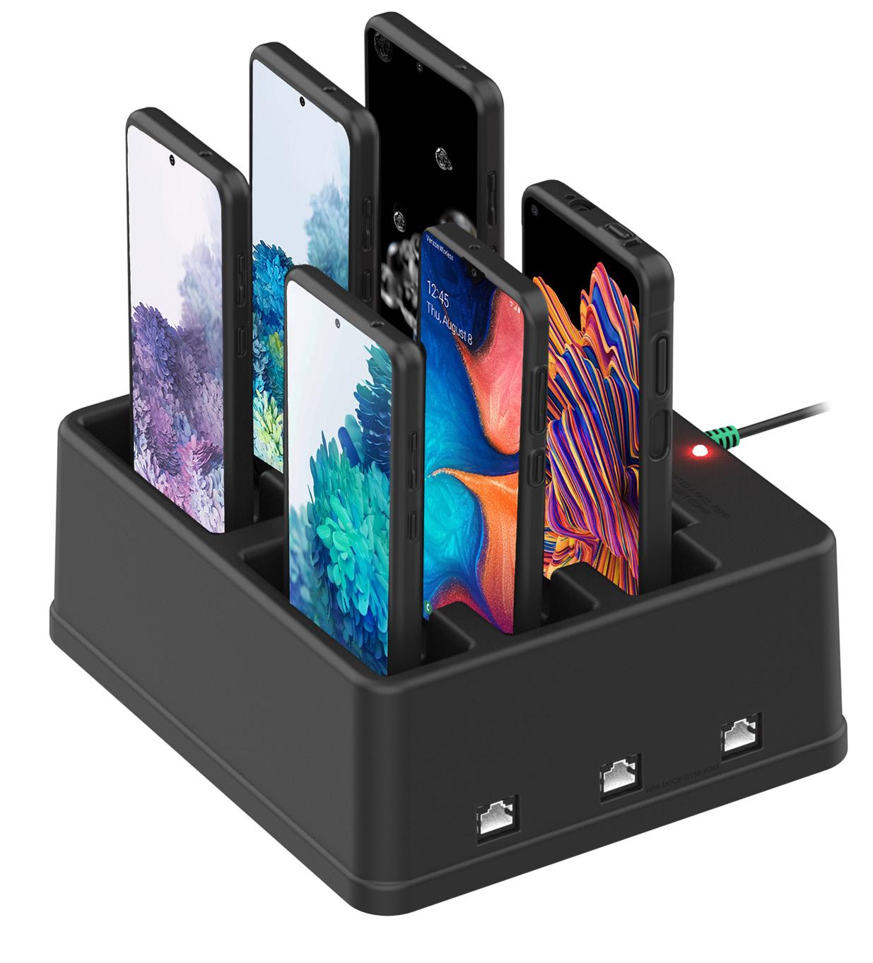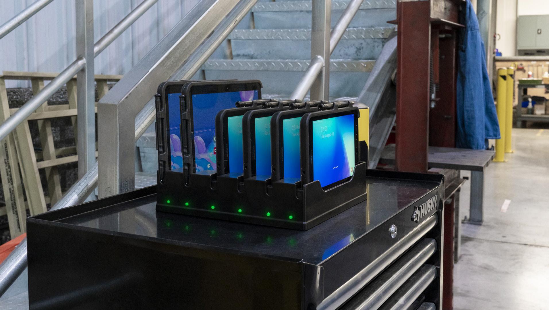 Multi-port docking stations keep devices charged overnight, reducing clutter and damage to charging ports
