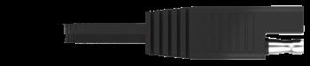 Oversized strain relief protects cable connection and keeps device tethered to vehicle