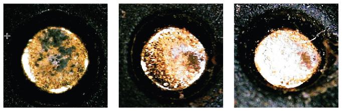 Uncap your DeoxIT® Pen, or wet the end of your Q-tip with the cleaning agent and twist in a circular motion against each pogo pad 2-4 times each pad. Check pad for cleanliness and repeat the process until thoroughly cleaned.