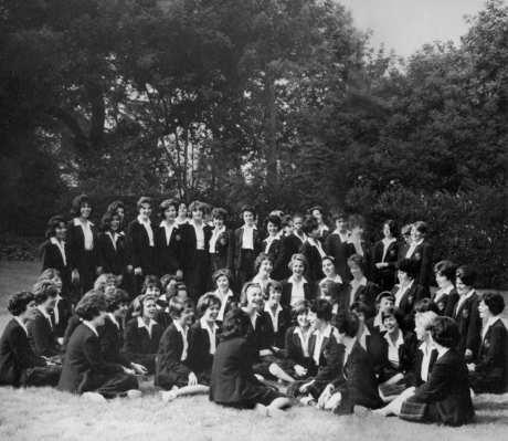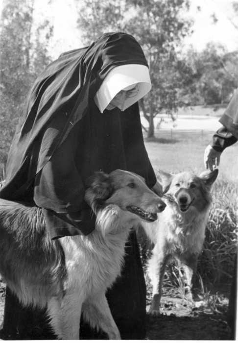 The Sisters’ dogs, Classie and Shannon, were familiar to many students in the late ‘60’s and early 70’s. Pictured here with Sister Gerarda Marie Joubert.