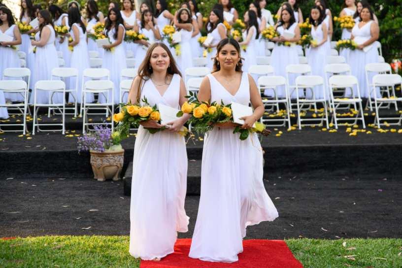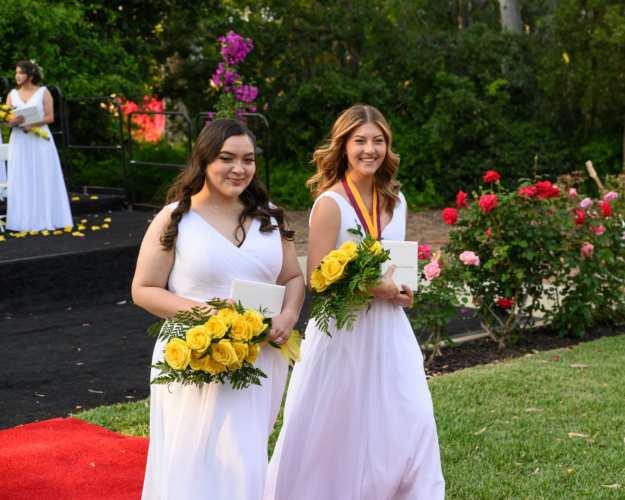 Alexandra Mullis and Sofia Sahagun walk through Rose Heath as new graduates!