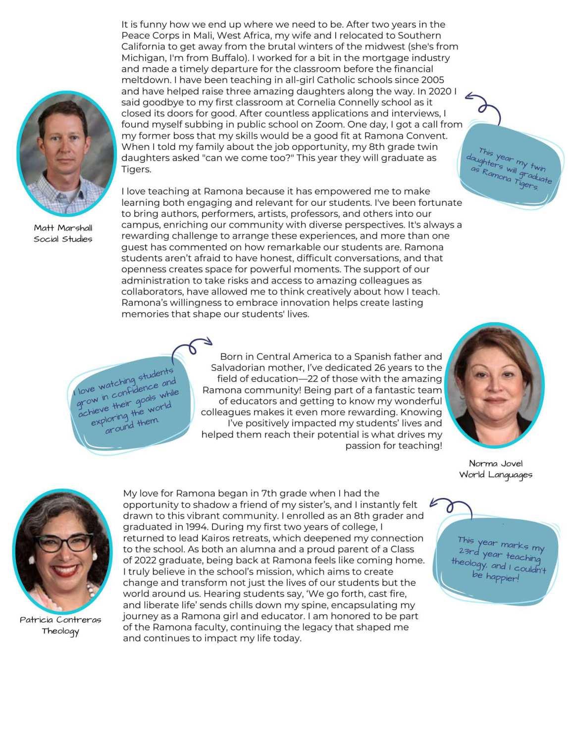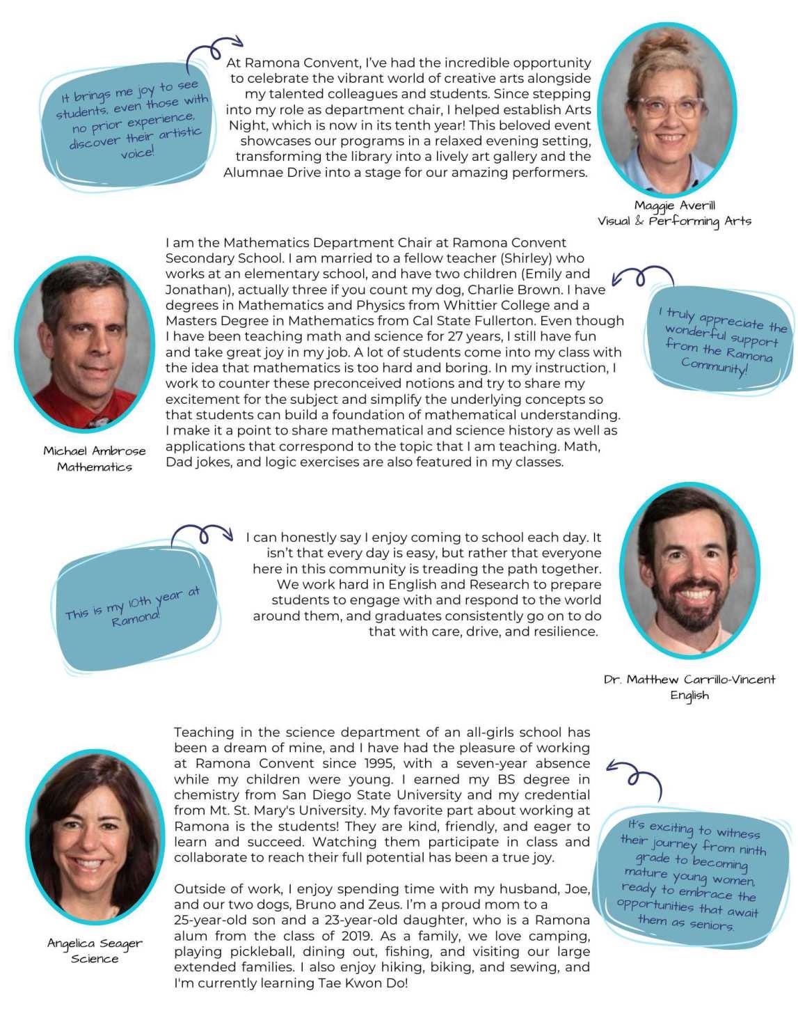 The 2024-2025 academic year will be a year of celebration. Ramona Convent proudly commemorates 135 years of educating young women, a significant milestone that fills us with pride and a sense of belonging. Blessed Marie-Rose, a woman of extraordinary faith and courage, was also blessed with a powerful vision of empowering young women to be lifelong learners. We are proud to continue her vision by being innovative and creative, building a curriculum that inspires and ignites a desire to pursue higher education. I am profoundly committed to providing our community with the most significant and viable programs to expose our students to what they want to pursue. I am so proud of igniting new programs that only continue to amplify our robust curriculum.