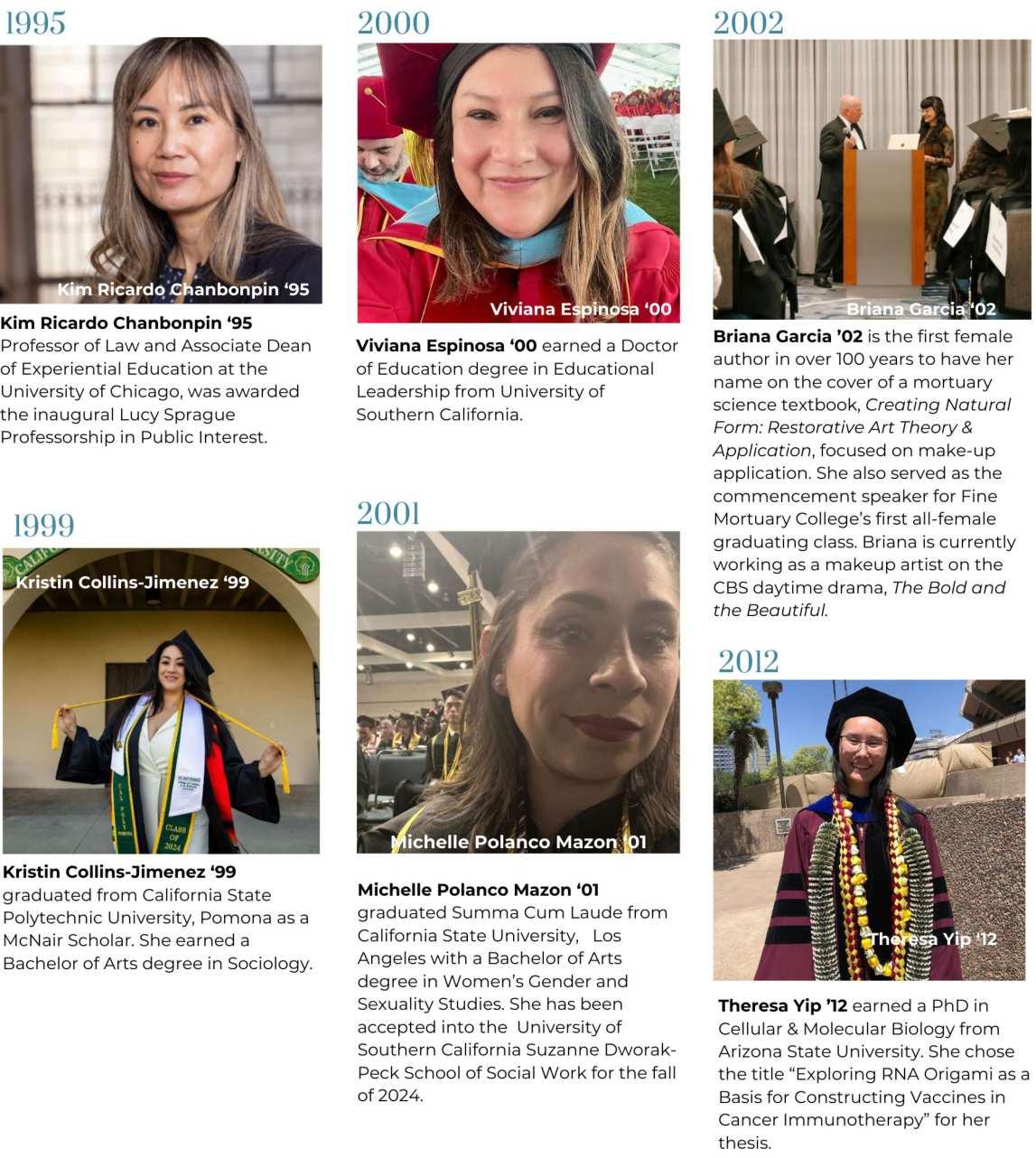 l-r: Diane Valero ’90 with Ivy, Nancy Gonzalez ‘97 with Sidney, Susana Oros-Mijangos ’98 with Marissa, Claudia Espinoza-Wilson ‘96 with Leticia, and Jennifer Lacson ‘90 with Kiana (not pictured Wendy Garza ‘97 and Sasha)