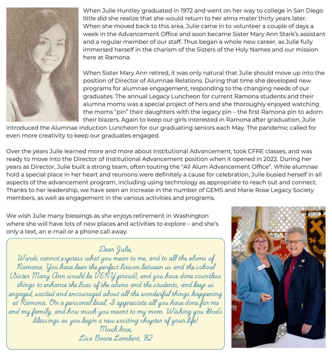 In loving memory and thanksgiving of our Ramona Alumnae who have gone before us.