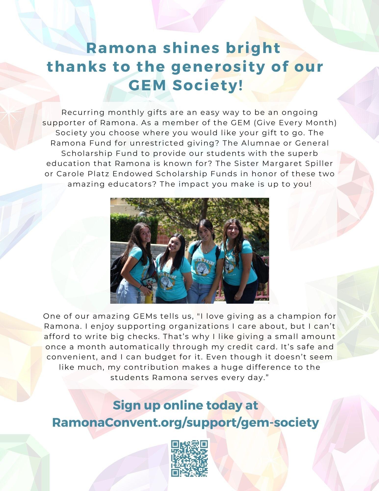 Your experiences here at Ramona will stick with you and we look forward to making more memories with you in the future as our newest alumnae. Ramona is a community and family.....for life.