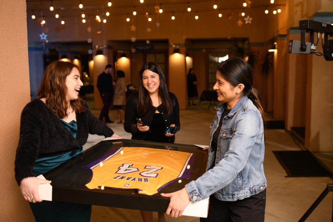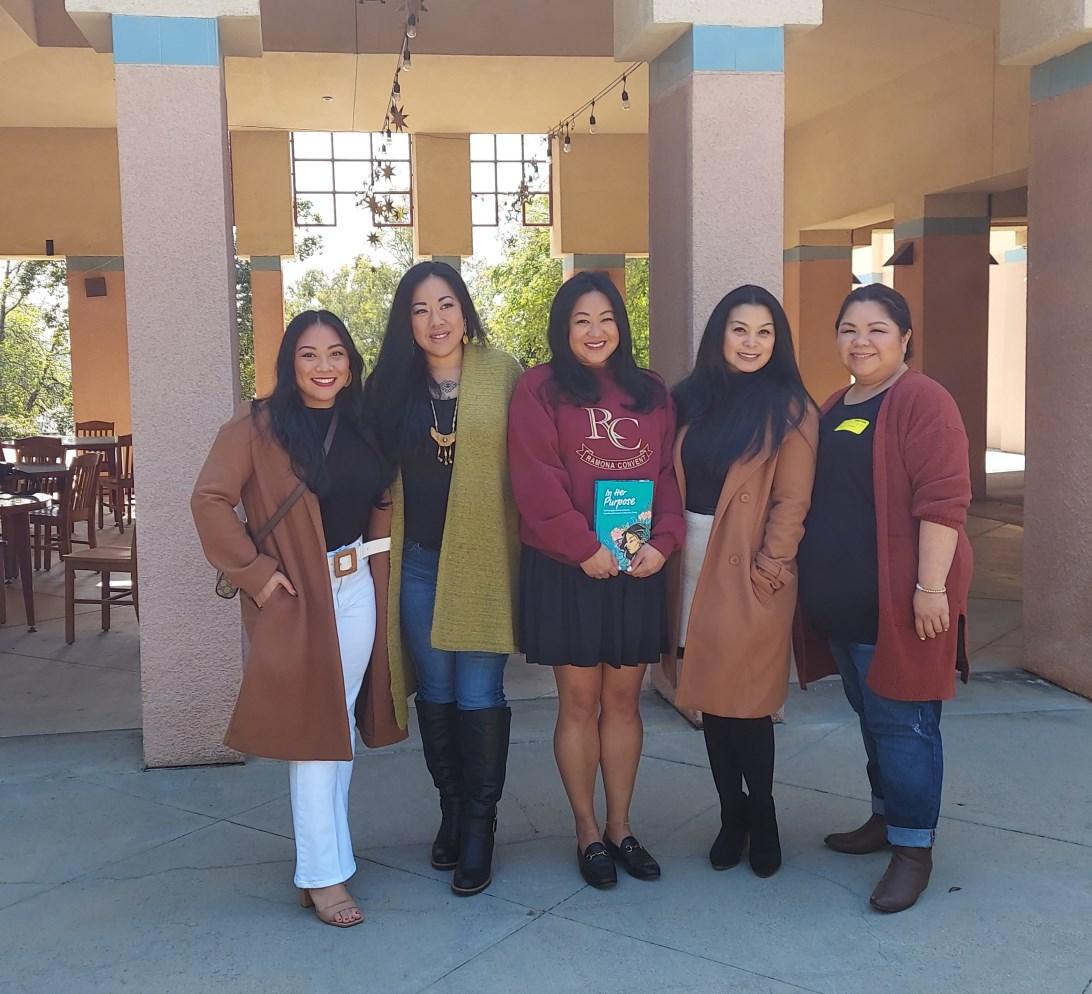 Wearing her Ramona sweatshirt, Jennifer Redondo-Marquez ‘99 poses with fellow speakers