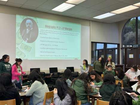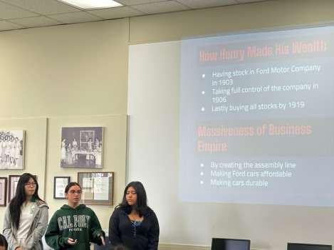 US History students recently completed a project on "The Gilded Age," culminating in presentations about key “economic titans” of the late 19th century. Each group researched influential figures such as Andrew Carnegie, John D. Rockefeller, Henry Ford, J.P. Morgan, Andrew Mellon, James Fisk, Cornelius Vanderbilt, and James Duke. Their objective was to analyze and present how these individuals impacted the country economically and socially during this transformative era.