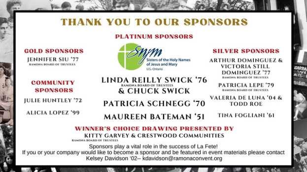 For more information, please contact: Kelsey Davidson ‘02, Alumnae & Special Events Manager, kdavidson@ramonaconvent.org