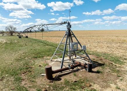 Dual water rights—drawing from both groundwater and surface water sources—provide consistent and secure access to irrigation throughout the growing season. This redundancy adds significant value, ensuring crop health and yield stability even in years of low precipitation or restricted allocations. At the center of the farm is a well-maintained 1998 Zimmatic 7-tower pivot system, equipped with 38” tires replaced in 2023. The system is professionally serviced annually to ensure peak efficiency and field coverage.