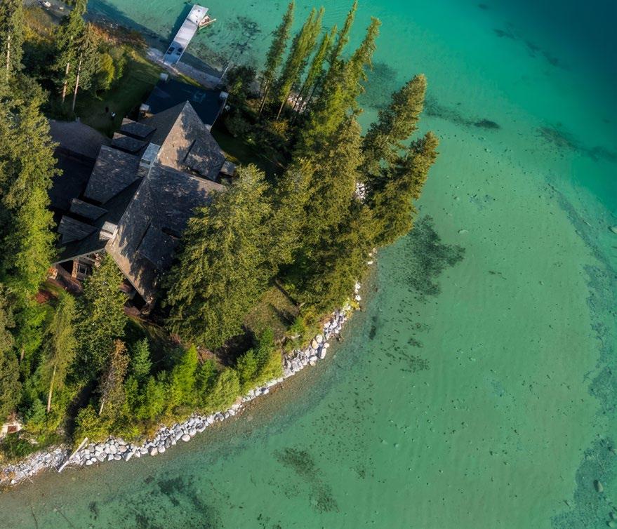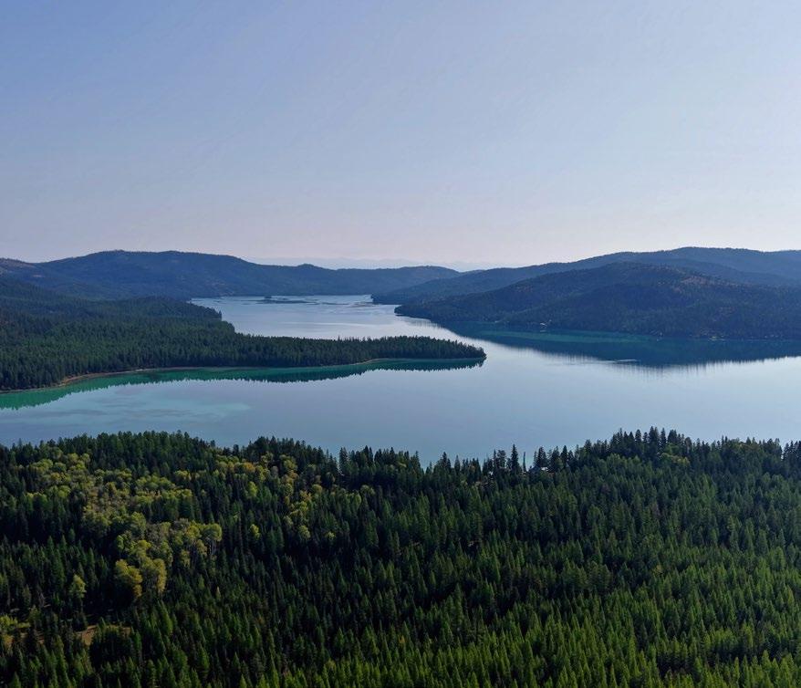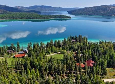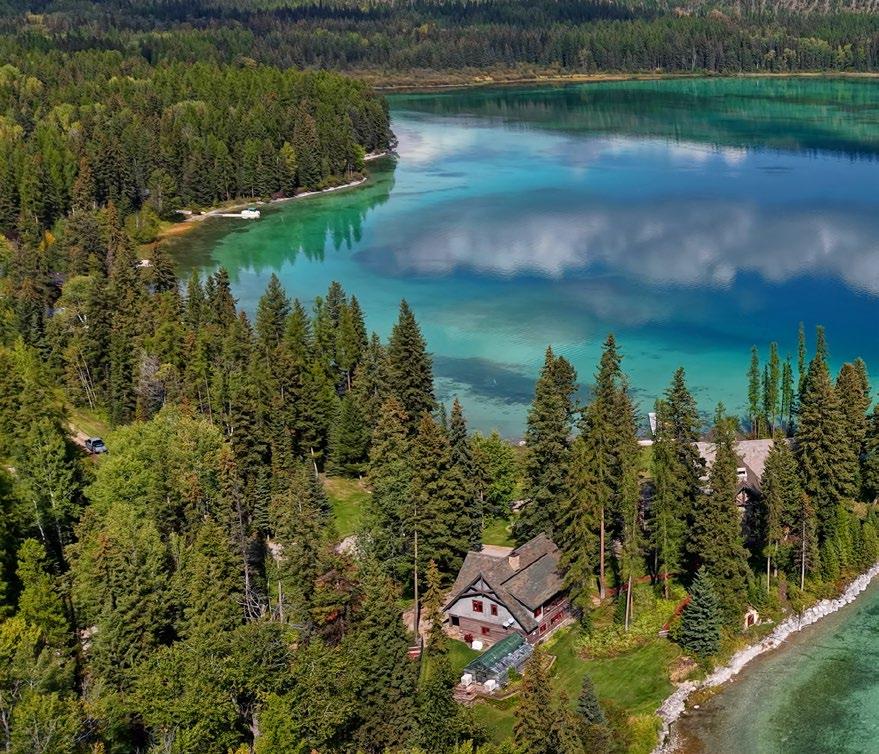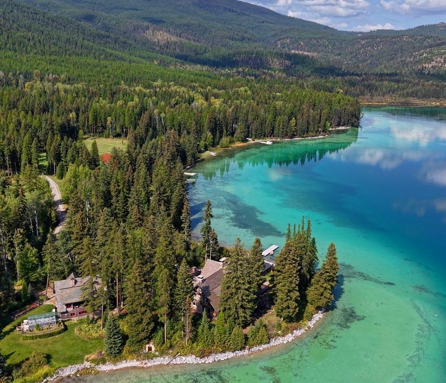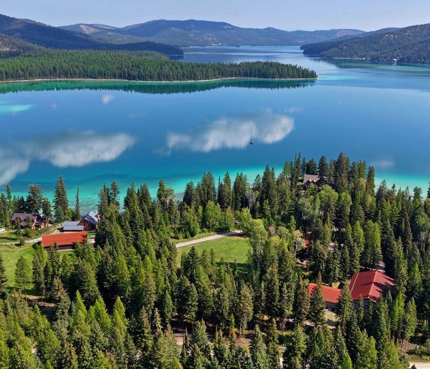 The views from the lodge and guest home of the surrounding mountains and lake are aweinspiring! The improvements are positioned to allow people to enjoy the beauty of the surroundings and, on most days, offer a vantage point and view of nearby Blacktail Mountain Ski Resort. Much of the shoreline near the compound is comprised of National Forest Land, which will provide a preserved and protected view corridor heading into the future. Plus, vistas of the turquoise blue lake and surrounding mountains from the high reaches of the mountain ranch acreage do not disappoint and make heading out on the extensive trail system throughout the mountain ranch portion of the estate an added treat.
