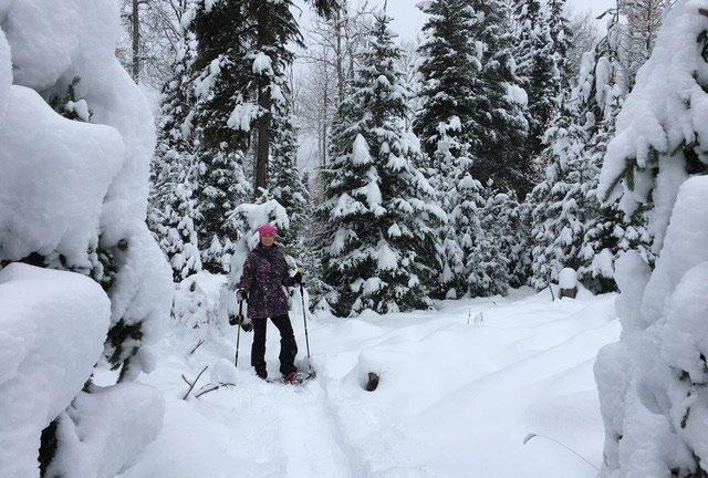 Winter adventures are special as the snow blankets the trees and creates a peaceful backdrop for snowshoeing, cross-country skiing, and side-by-side adventures, with tracks through the canvas of freshly fallen snow.