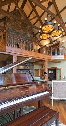 • Open living space with home office, wood burning fireplace, art gallery, balcony view of the great room below, lake, and mountains