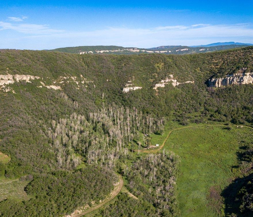The very diverse acreage averages 7,200’ in elevation and includes aspen, chokecherry, gambrel oaks, and open meadows. Dramatic sandstone cliffs on and off the deeded acreage highlight the ranch.