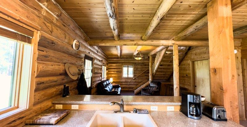 • Three-bedroom, two-bathroom log cabin with adjacent guest quarters with furnishings negotiable