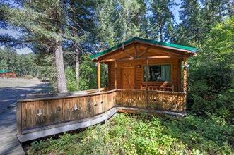 Situated along the banks of the crystal clear waters of Boulder Creek, this captivating property includes ten rustic and beautifully maintained guest cabins in a gorgeous forest setting. When arriving at the resort, guests check in at the welcoming lodge, which features a comfortable and cozy restaurant open to guests and visitors for breakfast and dinner. When available during the summer, outdoor deck dining is a delightful experience, with fantastic views of a lush forest, well-maintained foot-traffic trails, and quaint bridges spanning the crystal-clear creek.