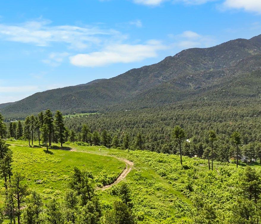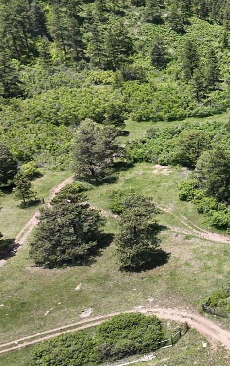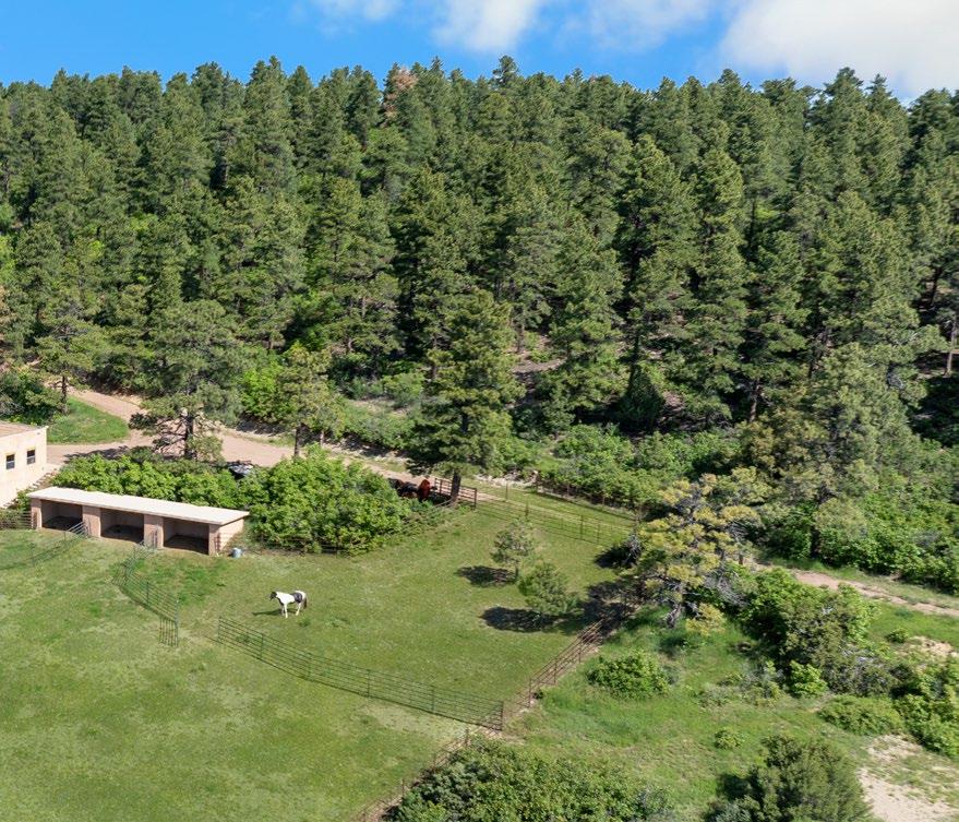 Bramaré Ranch covers very diverse terrain. The home is situated on a south-facing hillside, creating fantastic views of the local mountains. The thick pine forest creates privacy for the home and shade for livestock and wildlife. There is a mix of gently rolling irrigated meadows and rocky bluffs on portions of the ranch, along with scattered grassy meadows throughout the pine forest, creating a quintessential Colorado mountain property.