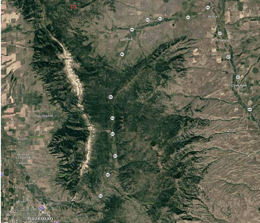 East Bridger Refuge is a unique property just 45± minutes from Bozeman, Montana. In the foothills on the east side of the Bridger Mountains and just northwest of Sedan, the 80± deeded acres boast several beautiful changes in topography and vegetation. As you enter the property, south-facing grass and sage pastures lead to dense Douglas fir-covered ridges. From this vantage point, you can see the South Fork of 16 Mile Creek surrounded by quaking aspens and willows. To the north and south, you have spectacular views of the Bridger Mountains, as well as the Crazy Mountains to the east. All these transitions make for eye-appealing viewsheds and entice wildlife with cover, travel corridors, and access to food and water. The rich soil and abundant springs make an ideal environment for gardens, crops, and farm animals. East Bridger Refuge borders Gallatin National Forest on its southern and western boundaries, providing direct access to thousands of acres of public land. The other neighbors are large in-holdings, some long-time ranching families, and others new arrivals who have made significant commitments to their properties, creating a uniquely kept neighborly environment of communication and honor. With all this adjacent wide open private ground and public land, many elk, deer, black bears, and moose utilize the 12 springs for water as they travel throughout the refuge.